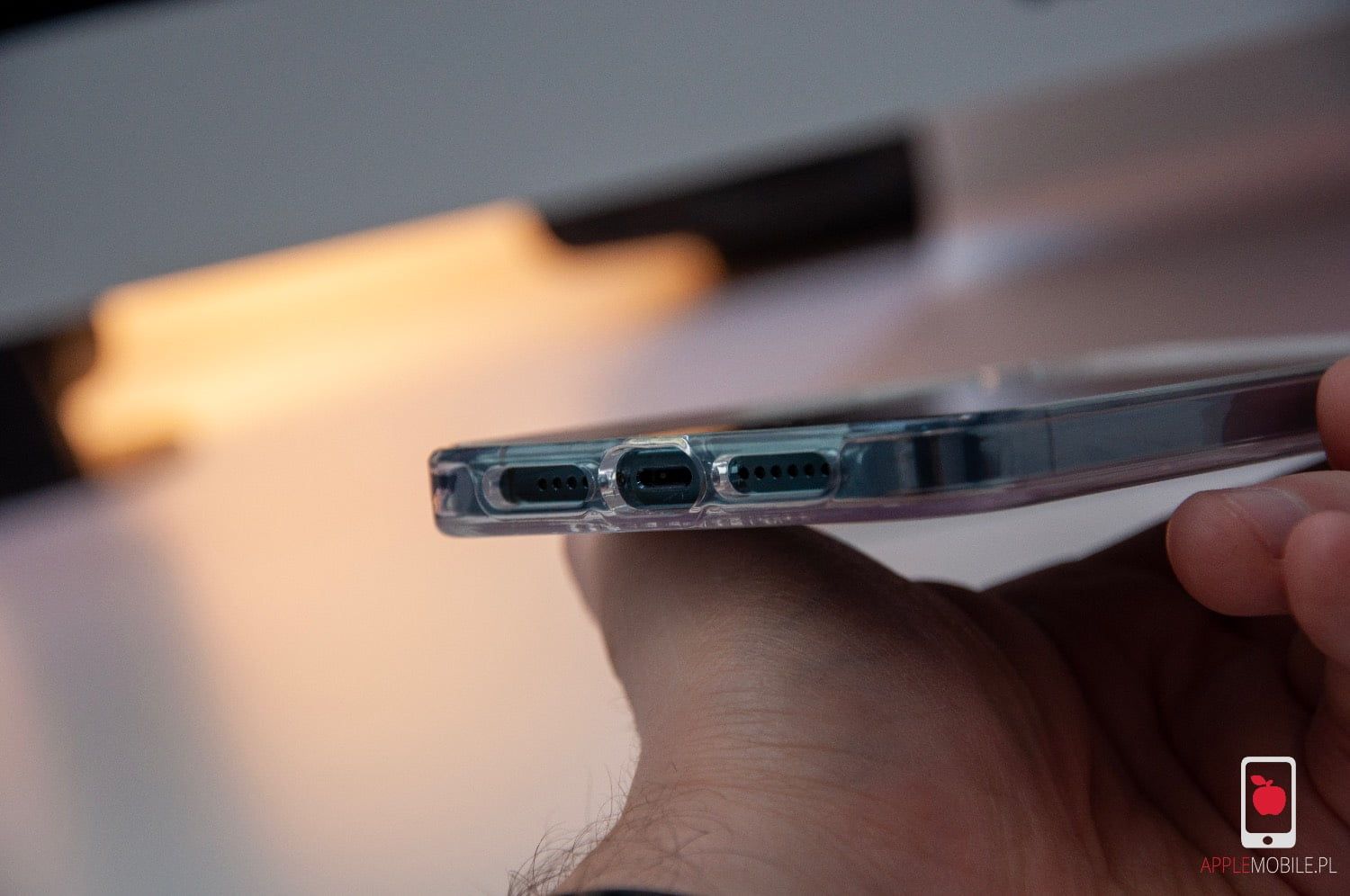 Dodatkowo bardzo mocno wystające obiektywy aparatów w tym modelu są dobrze chronione za sprawą pierścienia wokół nich, unosząc krawędź etui ponad nie. Dzięki temu w razie upadku, aparaty powinny pozostać nietknięte, co w przypadku iPhone’a 12 Pro Max ma szczególne znacznie, gdyż aparat fotograficzny jest przypisany do płyty głównej, a to oznacza, że nie ma możliwości jego wymiany. Przynajmniej na dzień dzisiejszy.