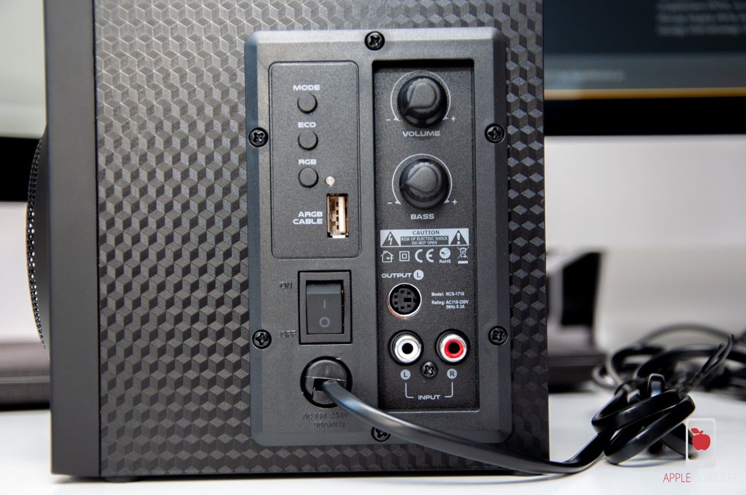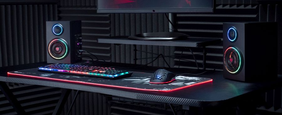 Kolumny są głośne i oferują całkiem przyjemny dźwięk stereo. Oczywiście przyzwyczajony do zestawu 5.1, najbardziej brakowało mi mocnych basowych zejść, dlatego tu potencjometr był odkręcony na maks swoich możliwości i.. niewiele to dało. Przez brak typowo niskotonowego przetwornika, brak potężnych uderzeń i strzałów daje się odczuć i nawet basrefleksy umiejscowione z tyłu kolumn niewiele ratują sytuację. Natomiast zestaw dobrze się odnajduje podczas słuchania muzyki, gdzie średnio-nisko tonowe przetworniki wsparte przez tweetery oferują całkiem niezłe muzyczne tło do pracy czy innej komputerowej rozrywki. Efekty RGB to oczywiście fajny bajer, szczególnie w przyciemnionym pomieszczeniu, jednak na co dzień raczej rzadko bym z tego korzystał. Nie mniej jednak rozumiem ludzi, którzy podświetlają swoje maszyny, tuningują obudowy i dokładają ciekawie podświetlane akcesoria.