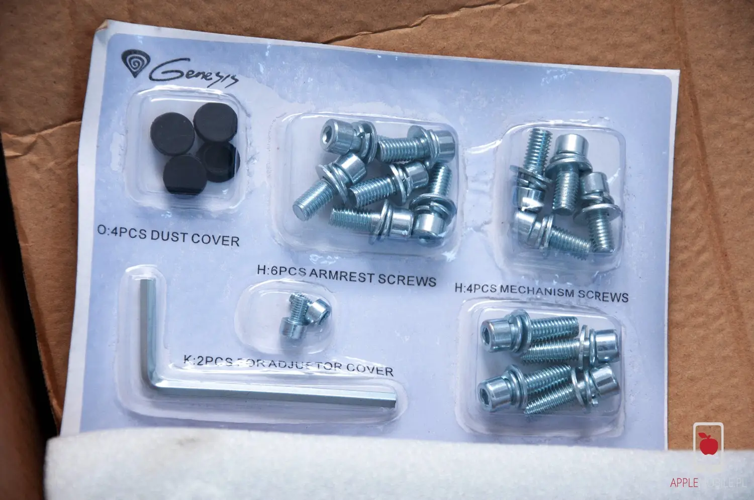 W zestawie znajdziemy wszystko – każdy element fotela, od najmniejszej śrubki, po narzędzia do jego złożenia. Nie potrzebujemy więc po zakupie nic, poza 15 minutami czasu na skręcenie zgodnie z załączoną, intuicyjna instrukcją i ewentualnego pomocnika. Choć ten ostatni nie jest konieczny. Wszystkie śruby są podzielone i opisane, aby użyć dokładnie tych, które są przypisane do danego elementu. Nie sposób wiec złożyć fotel źle.