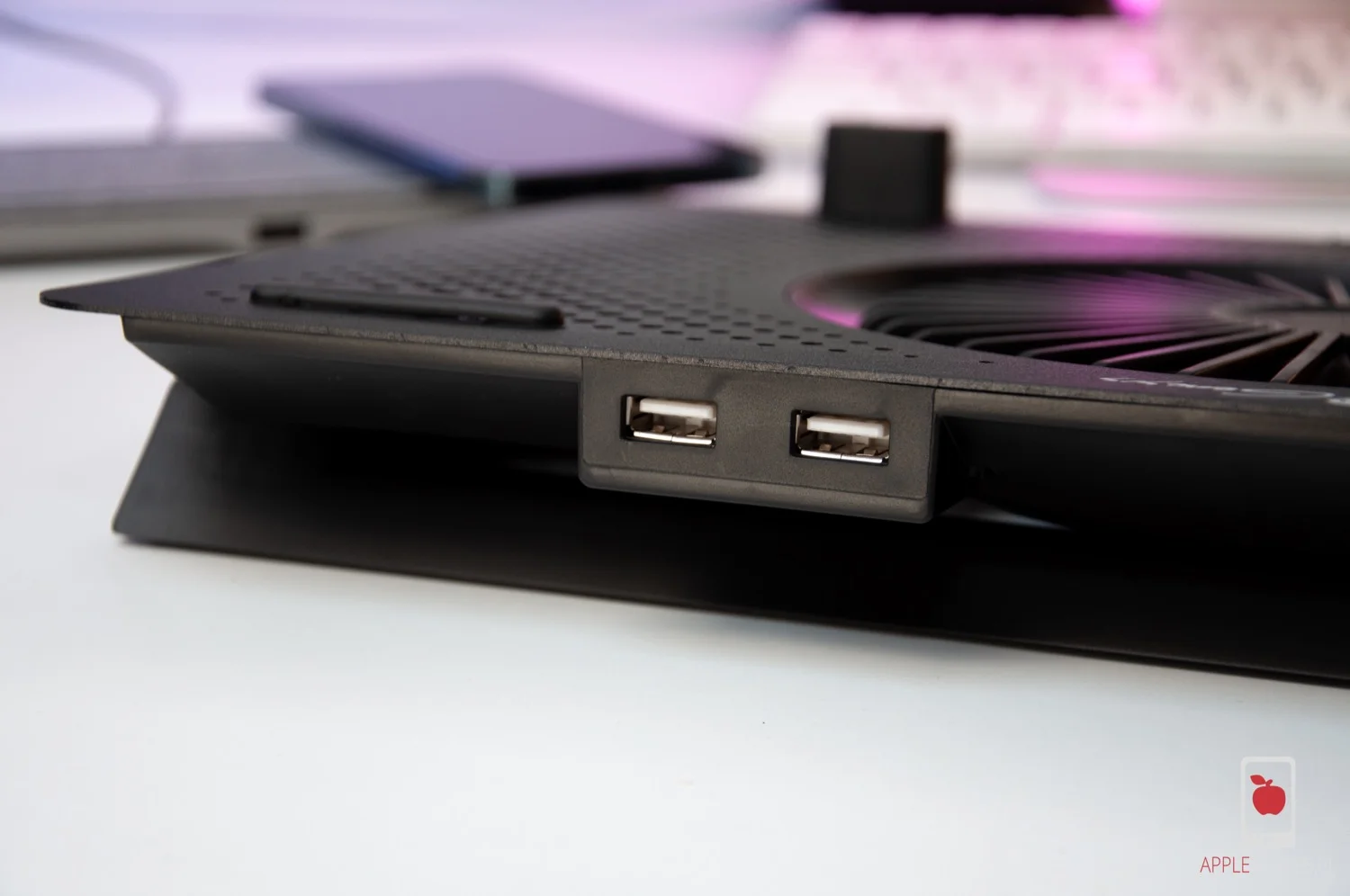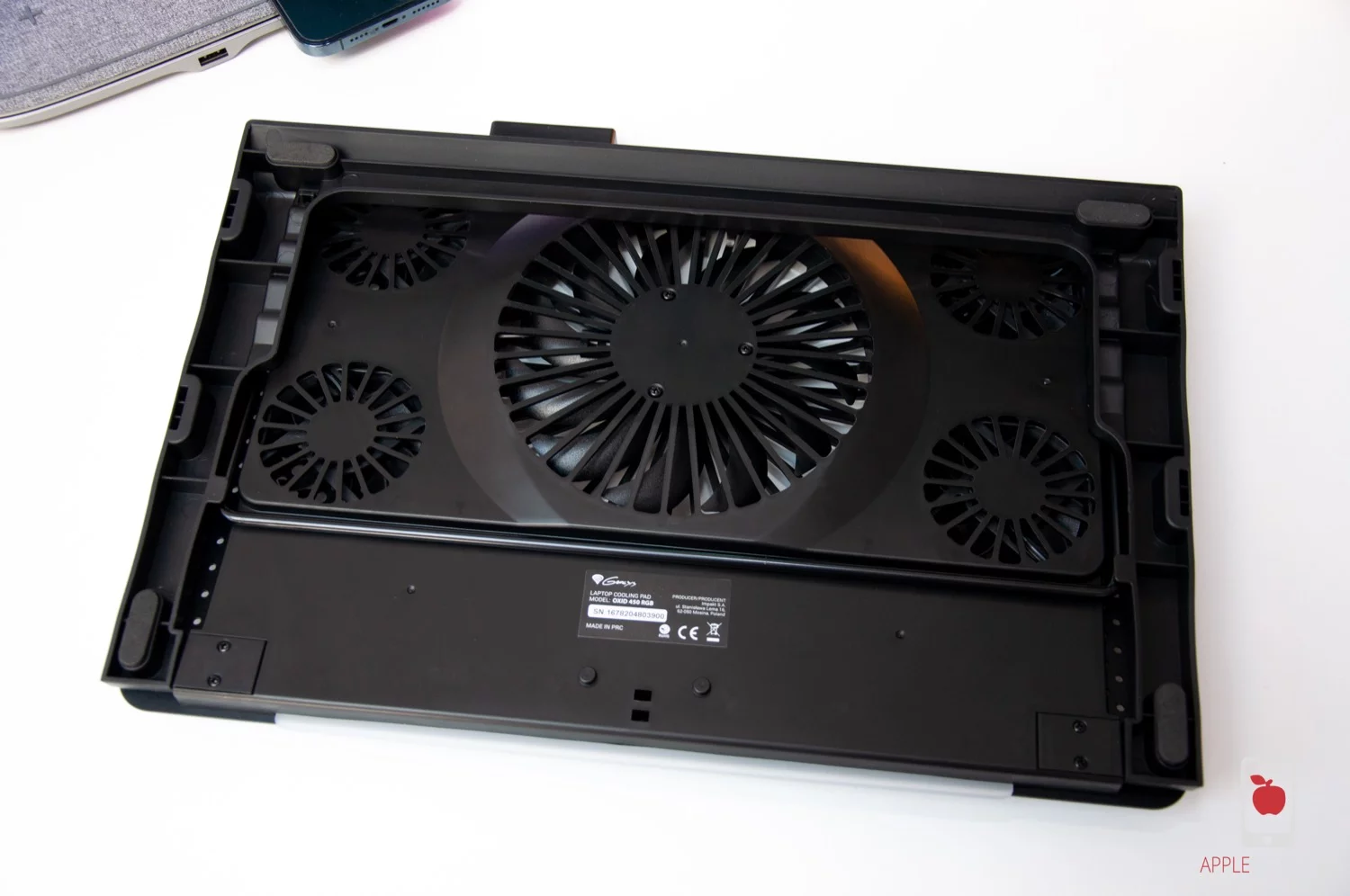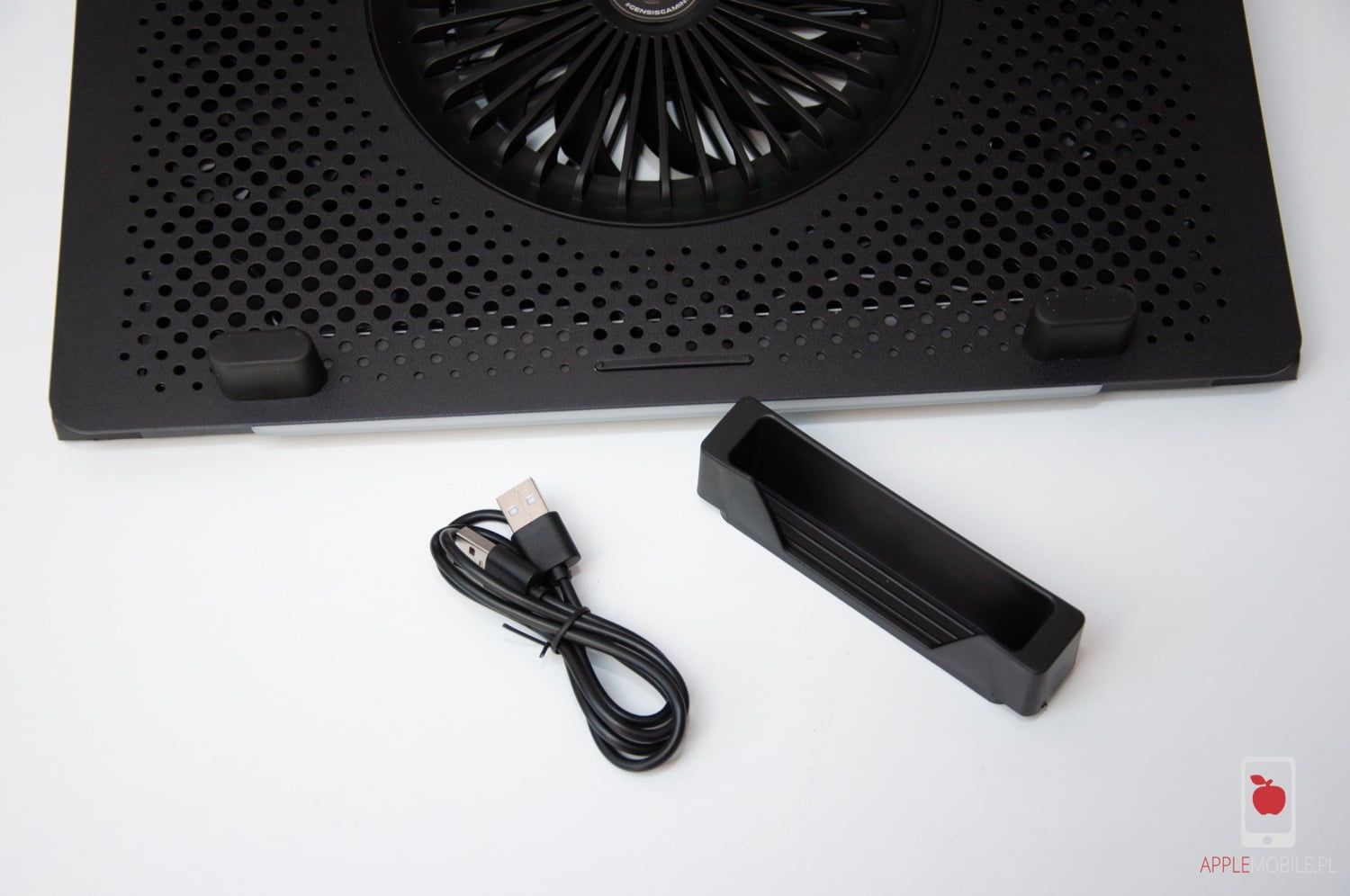 Podkładka została wyposażona w 4 małe oraz jeden wielki wentylator. Małe umieszczono na bokach podkładki. Duży jest w centralnej części urządzenia i to głównie od wpływa na to jak bardzo uda nam się schłodzić komputer.