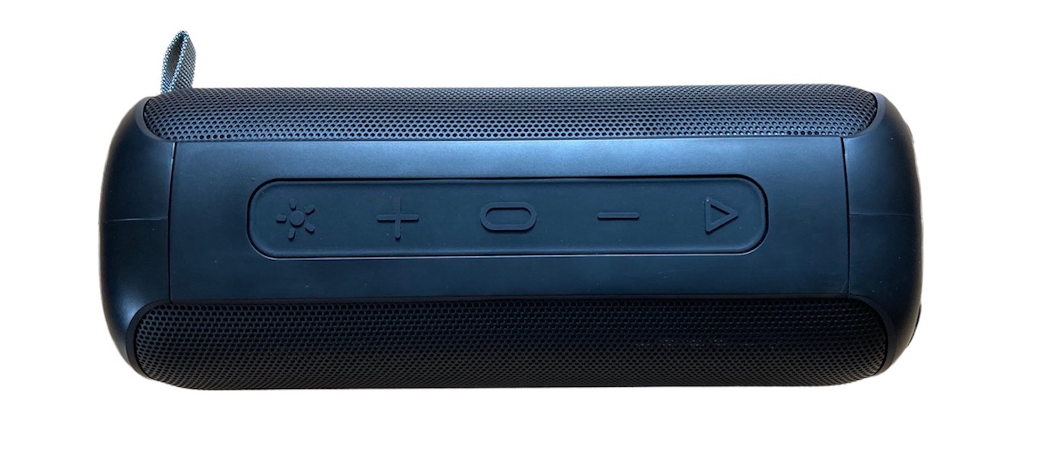 Rozmieszczenie przycisków sterujących uważam, za wzorowe. Znajdują się u góry urządzenia. Pokryto je paskiem gumy z wytłoczonymi oznaczeniami. Są łatwo dostępne, wygodne do wciskania. Nawet w ciemności nie ma problemu z obsługą głośnika.