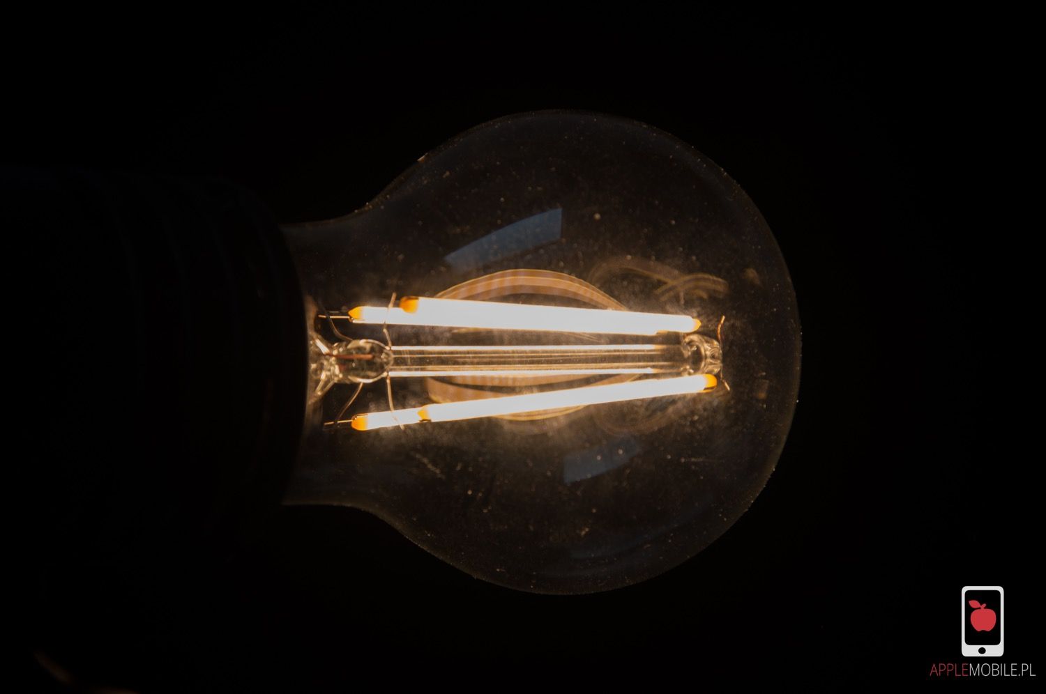 Natomiast bardzo zaskakuje jej sposób świecenia. Mimo, że przecież za „świecie” odpowiada tu technologia LED, to zastosowanie diod elektroluminescencyjnych w postaci długich „pałeczek” pozwoliły uzyskać efekt klasycznych żarników wolframowych. Żarówka generuje 800 lumenów światła, pobierając przy tym zaledwie 7W energii, co pozwoliło jej uzyskać najwyższą ocenę w klasie energooszczędności A++.