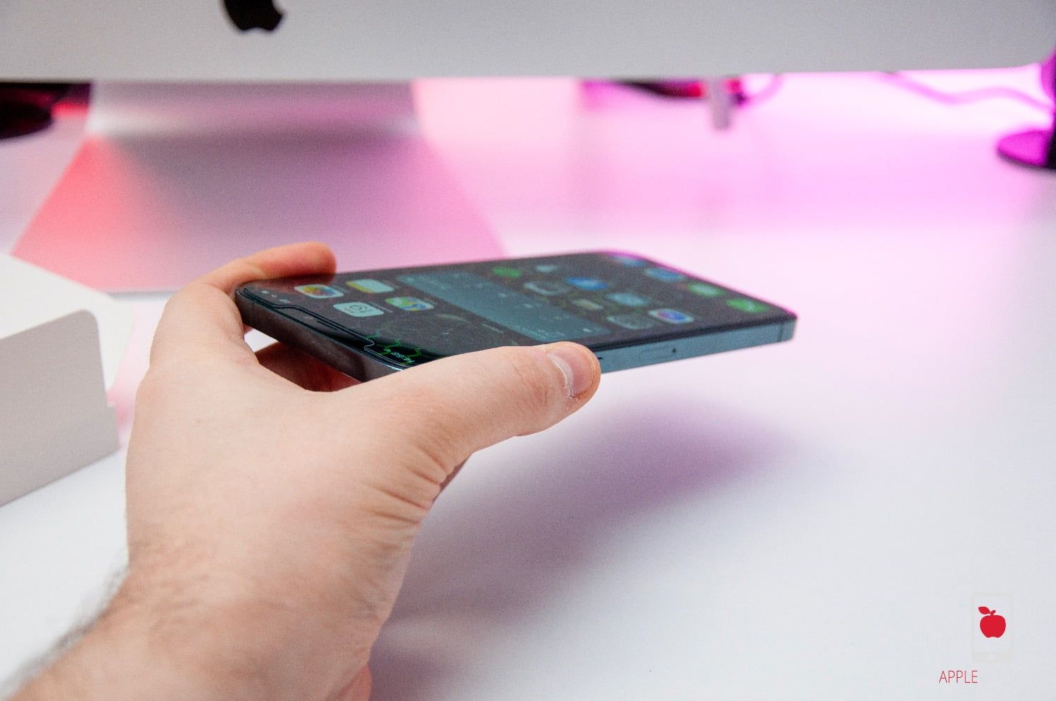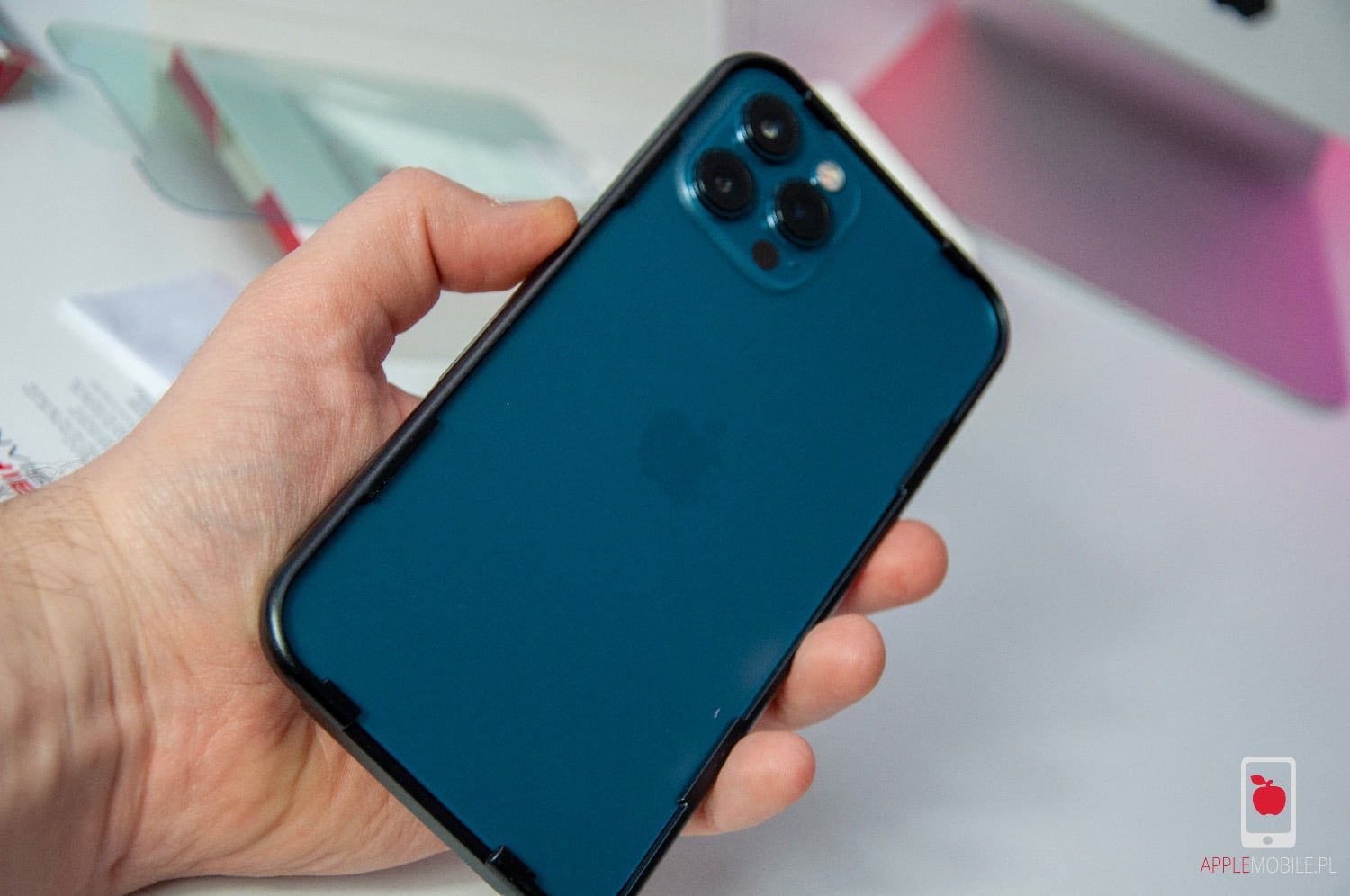 Zestaw zawiera specjalną ramkę montażową. Pozwala ona ustabilizować telefon na płaskiej powierzchni blatu. Ktoś powie, że to przerost formy nas treścią? A naklejałeś kiedyś szkło na iPhone’a 12 Pro Max z gigantycznymi i odstającymi obiektywami w rogu? Nie, to spróbuj bez tej ramki, a zrozumiesz o czym mówię.