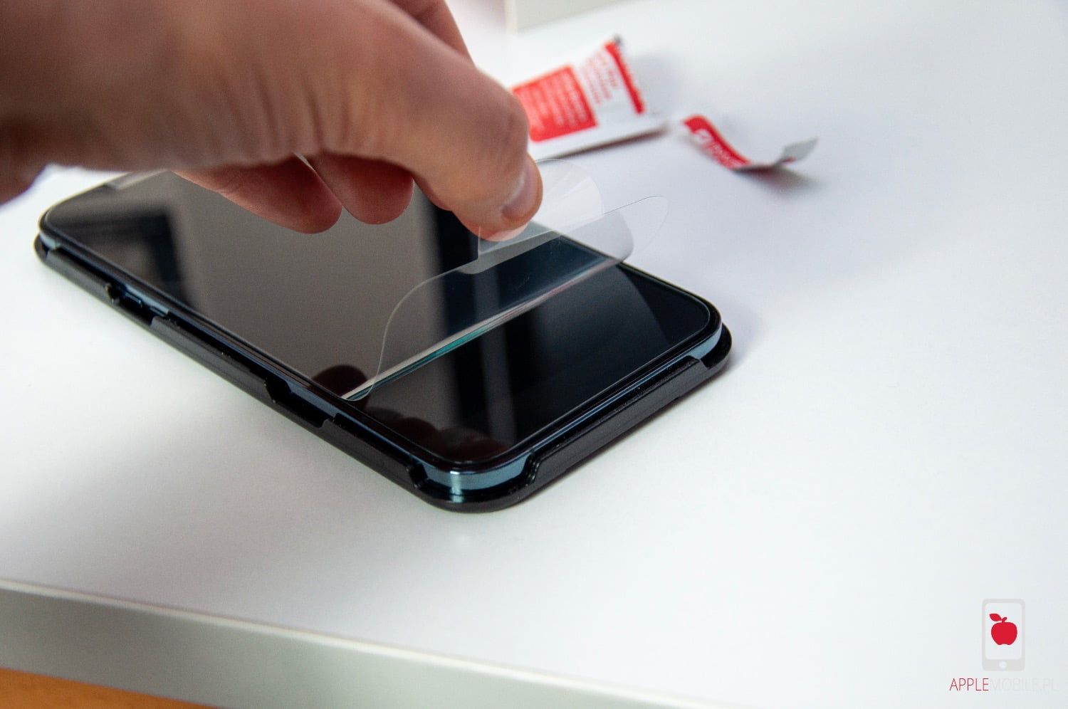 Kiedy telefon mamy już zabezpieczony w ramce, powierzchnię odtłuszczoną i wypolerowaną, to nie pozostaje nam nic innego, jak naklejać szkło ochronne.