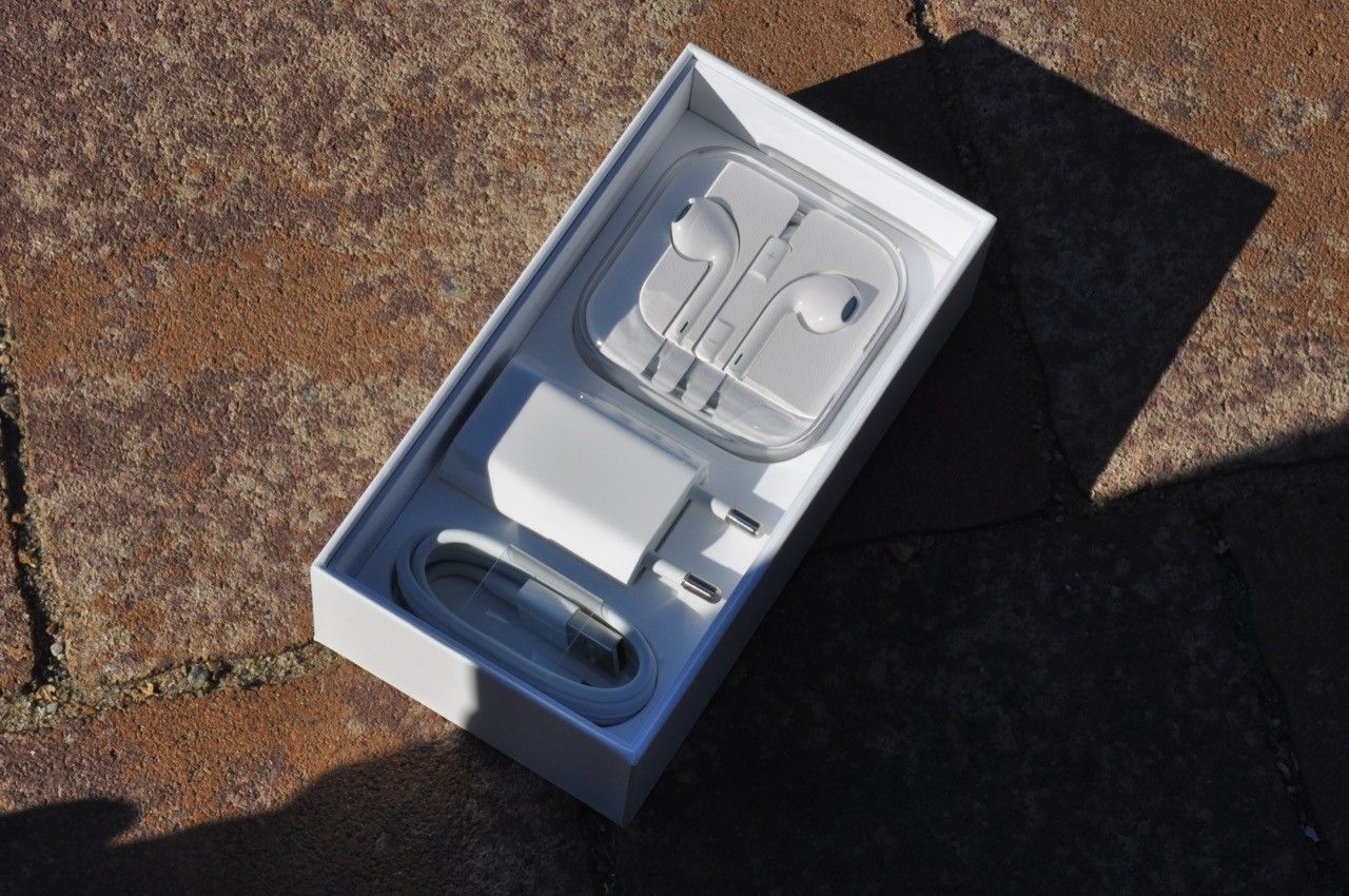 Po za telefonem w kartoniku znalazło się miejsce dla skromnej papierologii z ukrytym kluczykiem do otwarcia szuflady z tacką na kartę SIM, słuchawki stereo EarPods, które znanym już z poprzednich generacji, a także zasilacz do kontaktu i przewód Lightening.
