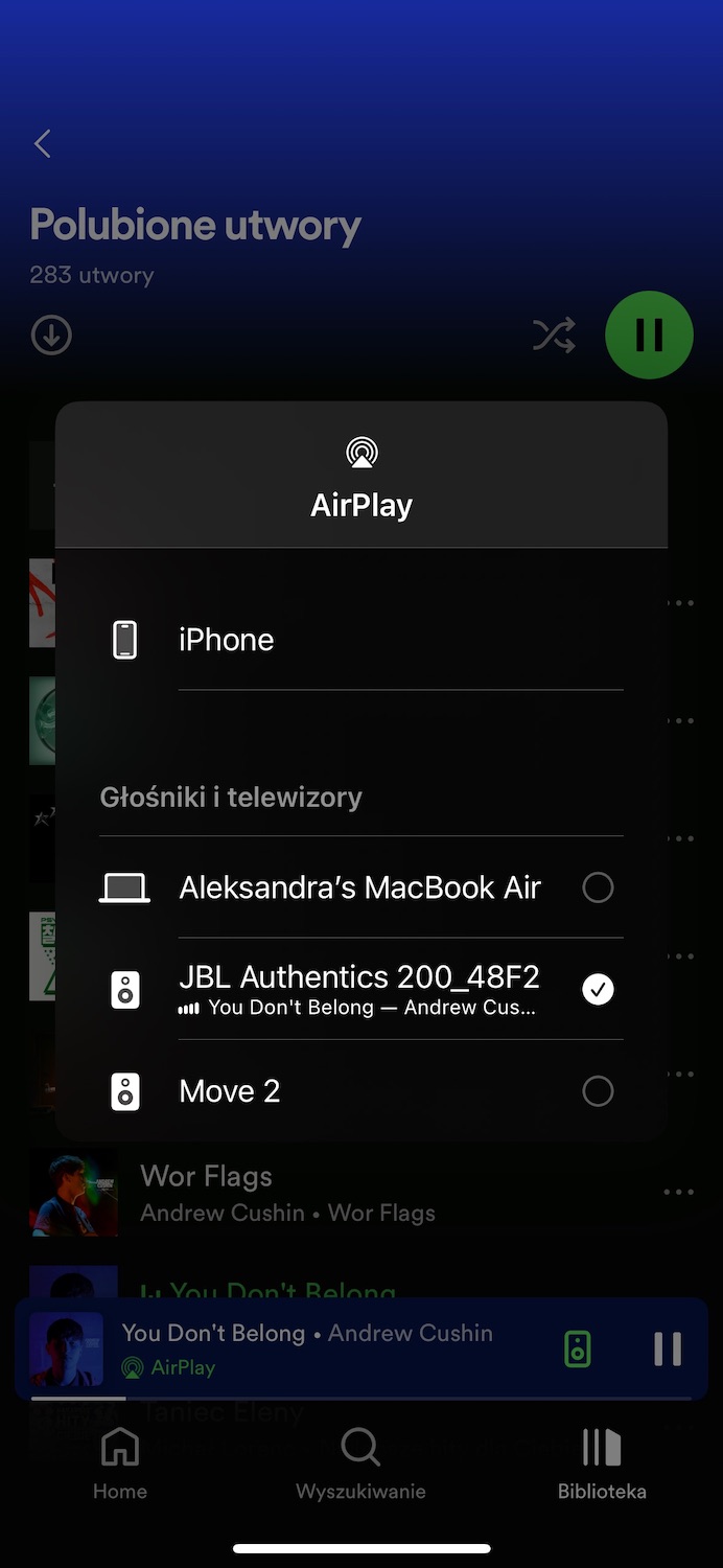 Ciekawym rozwiązaniem jest także możliwość sterowania muzyką oraz Google home przy pomocy asystenta głosowego Google, o ile korzystamy na codzień z tego ekosystemu. No i naszą wisienką na torcie jest AirPlay. Wystarczy, że nasz iPhone i JBL będą połączone z tą samą siecią. Teraz możemy strumieniować muzykę z naszego urządzenia do głośnika, a nawet wielu głośników, z innych aplikacji. Osobiście najczęściej korzystałam ze Spotify, najwygodniej mi się poruszać po tej aplikacji, jednak można także z Apple Music. Oczywiście nie ma problemu, żeby korzystać z głośnika również przy pomocy Bluetooth.