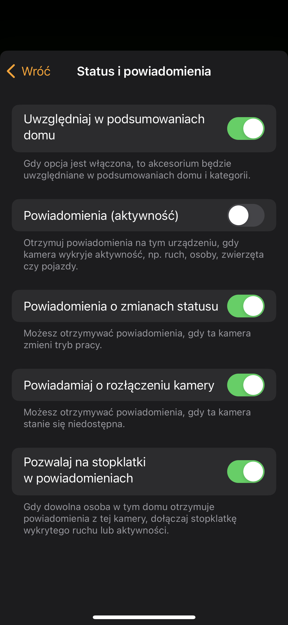 Jako, że kamera Onvis jest urządzeniem z natywnym wsparciem dla HomeKit (aktualnie Apple Home), możliwe jest użycie jej w automatyzacjach. Kamera może działać także jako czujnik wykrywający ruch. Nie ma fizycznego czujnika PIR czy mikrofalowego, ale wykrywa go na podstawie zmian w rejestrowanym obrazie. Możemy zatem skorzystać z prostych automatyzacji typu – włącz światło w przedpokoju po wykryciu ruchu, wyłącz przy braku ruchu, bądź bardziej rozbudowane w Skrótach.