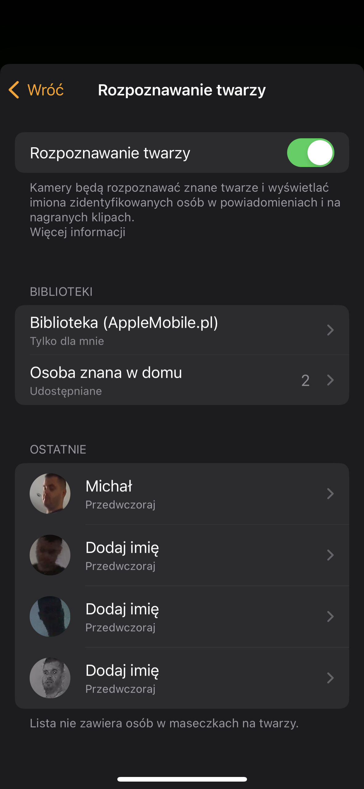 Za sprawą wsparcia dla HomeKit, nasze centrum akcesoriów w postaci Apple TV, bądź też głośnika HomePod potrafi analizować zapisywany obraz, rozpoznawać czy widzi pojazd, zwierzę, przesyłkę czy osobę, a także rozpoznawać twarze tych osób. Po wykryciu konkretnej osoby, będzie nas informowała o pojawieniu się tej osoby z imienia w postaci powiadomienia typu push. Dodatkowo kamera rozróżnia ludzi od zwierząt, samochody od ludzi, a przesyłki od zwierząt itd.