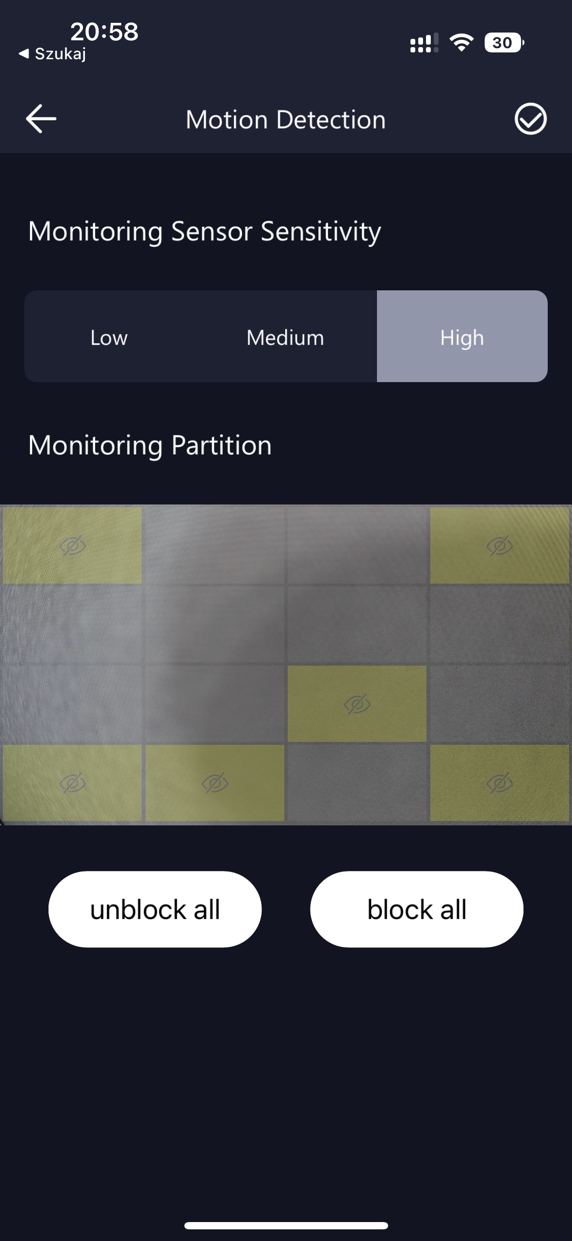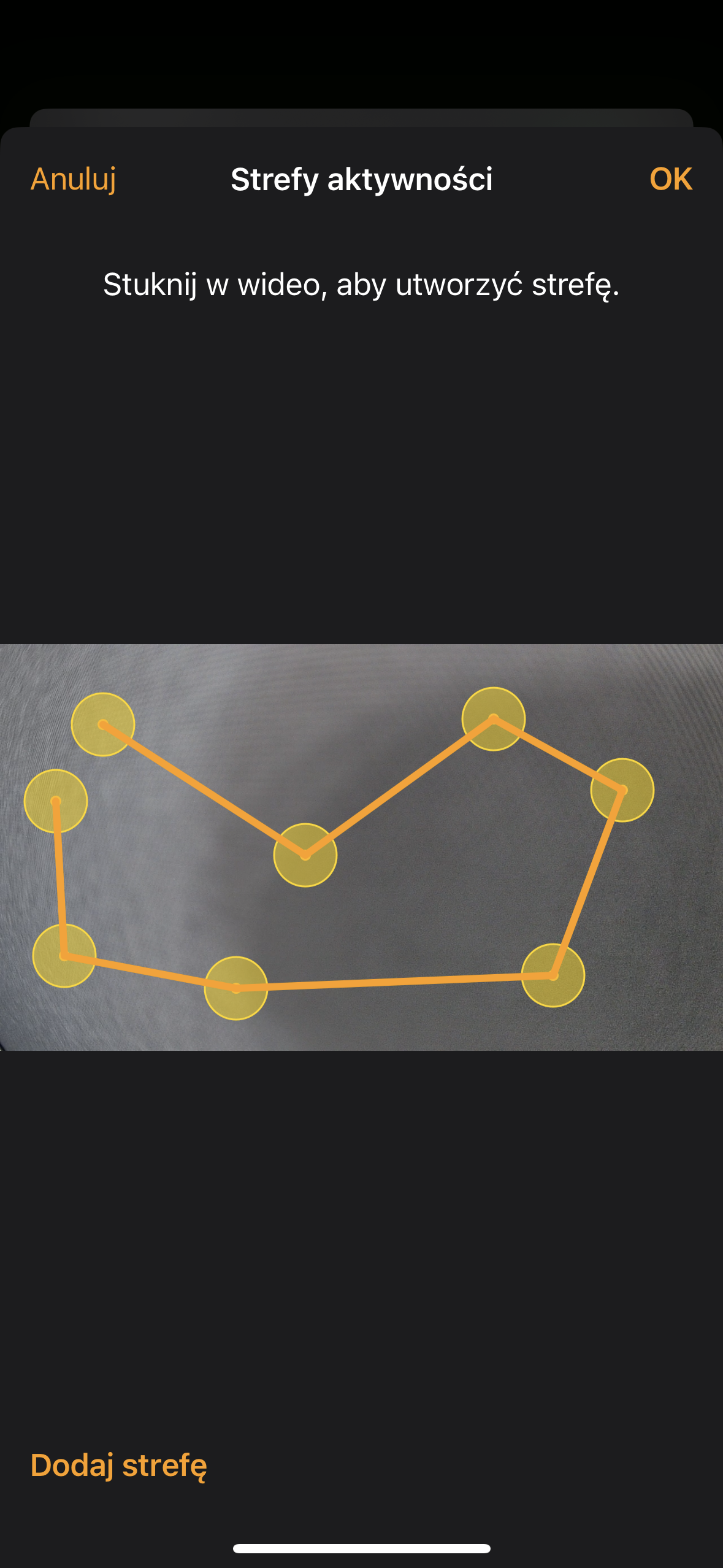 Kamera ONVIS C3 pozwala wskazać aż 16 małych kwadratów na kadrze, które mają być aktywne (wywoływać nagrywanie i powiadamianie o dostrzeżeniu intruza). Ponadto w aplikacji Dom możemy także zdefiniować obszary rysując linie, a to oznacza, że obszar aktywny może być zupełnie nierównomierny. Genialna robota Onvis!