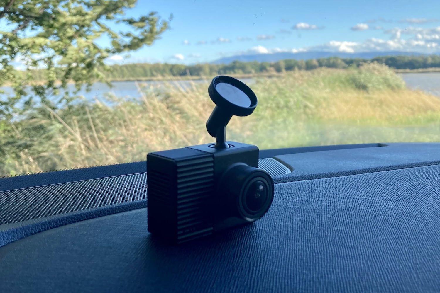 Pewnym wyzwaniem jest odpowiednie zamocowanie uchwytu. Magnetyczny uchwyt kamery składa się z dwóch części. Jedną nakleja się na szybę, drugą wciska się w kamerę. Podczas przylepiana uchwytu do szyby należy pamiętać, że kamera ma dwa obiektywy i trzeba zapewnić dobry widok na do przodu oraz do tyłu. W starszych autach będzie to bardzo proste. W nowszych, posiadających zintegrowane z przednią szybą kamery i czujniki trzeba się będzie trochę pogimnastykować. W moim aucie dość trudno było wybrać miejsce, z którego przednia kamera obejmowała jak największy widok przed autem, a tylna wnętrze wozu. Ze względu na dość mocno rozbudowany moduł z czujnikami, zajmujący górną środkową część przedniej szyby, pojawił się pewien problem. Gdy przednia kamera miała najlepszy widok do przodu, tylna w 1/4 przesłonięta była przez lusterko wsteczne. Jednak metodą prób i błędów udało się znaleźć złoty środek. Warto o tym pamiętać i pomyśleć PRZED przylepieniem uchwytu.
