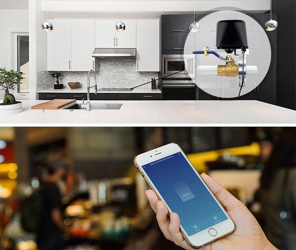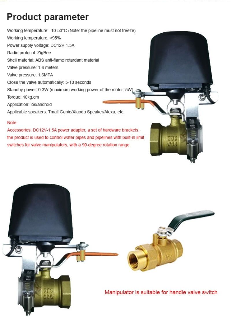 Jeżeli posiadamy już zawór, to najczęściej jest to zawór kulowy. Wbrew pozorom, to właśnie taki zawór najprościej ulepszyć o domową inteligencję. Wystarczy prosty mechanizm jak chociażby zawór YIDI zgodny z Tuya, który kosztuje niewiele ponad 100 złotych. Dostępna jest wersja WiFi niewymagająca bramki tak jak nasz czujnik zalania oraz Zigbee wymagająca bramki.