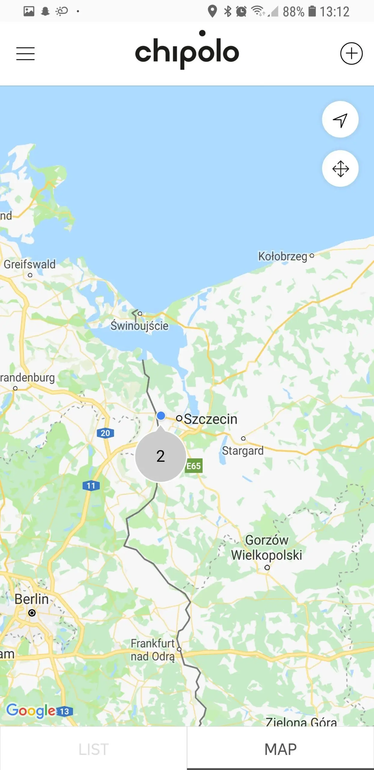 Gotowe, teraz możemy już korzystać z dóbr jakie daje nam lokalizator! W aplikacji wyświetlana jest mapa na której wyświetlana jest aktualna lokalizacj Chipolo, lub ostatnia lokalizacja, która została zapamiętana przed utratą łączności z lokalizatorem.