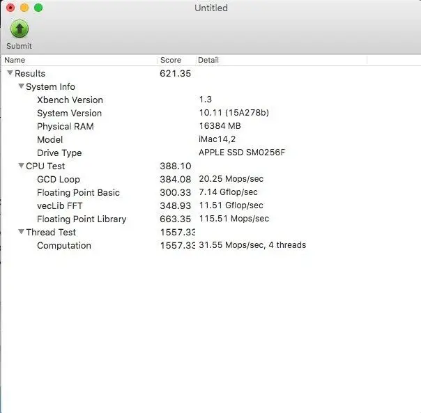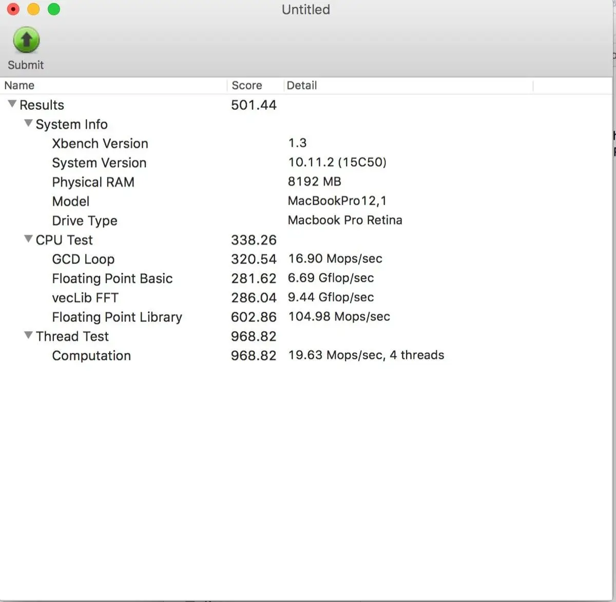 Jak widać, Macbook wypadł wcale niewiele gorzej od większego i starszego brata. Testowałem także dysk SSD aplikacją Disk Speed Test przy „stresie” o pojemności 5 gigabajtów. Ten test pokazał jak wielki potencjał drzemie w dyskach PCI-E i za co faktycznie płacimy w przypadku komputerów z taką pamięcią masową. Macbook potrafi zapisać i odczytać pliki z prędkością niemal 1200 MB/s. To coś niesamowitego, szczególnie przy pracy na dużych plikach.