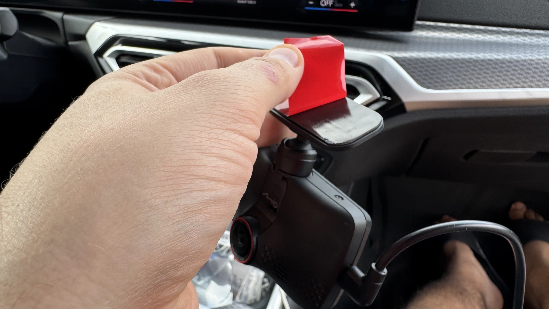 Następnym minusem dla wielu osób jest uchwyt montażowy. Uchwyt przykleja się za pomocą taśmy dwustronnej do szyby, na której®ą wcześniej nakłada się taką przezroczystą folię, by w razie chęci demontażu nie pozostał ślad. Ma to zaletę w postaci braku „walki” z przyssawkami, za pomocą których kiedyś mocowano kamery.