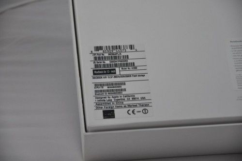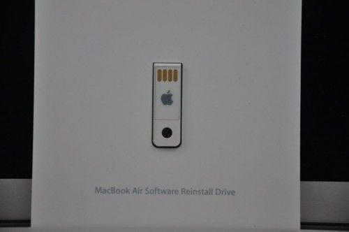 W kartonowym opakowaniu znajdziemy komputer, zasilacz MagSafe z dodatkowym przewodem przedłużającym i dokumentację. Z racji iż MacBook Air został pozbawiony napędu optycznego, producent zdecydował się na dołączenie oprogramowania do przywracania systemy MacOS X w formie przenośnej pamięci Flash, podłączanej do portu USB, a nie jak to miało miejsce do tej pory, na płycie DVD.