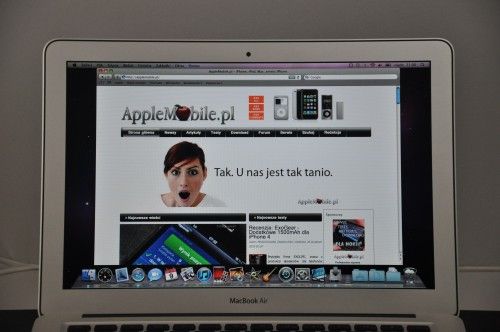 Ostatnia kwestia, to obraz. Wbudowany układ graficzny, to NVIDIA GeForce 320M z 256 MB pamięci SDRAM DDR3, która jest współdzielona z pamięci z RAM. W przypadku modelu z ekranem 13,3 cala, maksymalna rozdzielczość ekranu to aż 1440 x 900 pikseli. Jest to rozdzielczość natywna. Wbudowany ekran podświetlany jest diodami LED, dzięki czemu udało się osiągnąć tak niewielką grubość urządzenia. Nad ekranem zamontowano kamerę FaceTime, dzięki której można prowadzić bezpłatne wideo rozmowy z użytkownikami innych komputerów Mac, a także z właścicielami iPod?a Touch 4G, telefonu iPhone 4, oraz zmodyfikowanego telefonu iPhone 3GS.