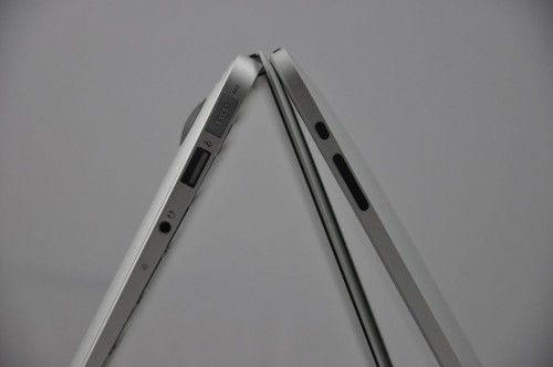 Po wyjęciu komputera pierwsze co nasuwa się na myśl, to niedowierzanie – jak oni to wszystko upakowali?! Komputer w najcieńszym miejscu, przy zamkniętej pokrywie jest niemal dwa razy cieńszy niż w pełni mobilny tablet iPad. Ba! O nawet jest niewiele cięższy od niego. Jego waga, to zaledwie 1,32 kilograma, przy wymiarach 32,5 cm × 22,7cm × 0,3 – 1,7 cm. W przypadku modelu z mniejszą matrycą wymiary są jeszcze bardziej zaskakujące. 30 cm × 19,2 cm × 2,8 – 17 mm, a jego waga to 1,04 kg. Przypomnijmy, że tablet iPad ma wymiary Wysokość: 24,28 x 18,97 x 13,4 przy wadze 0,73 kg.