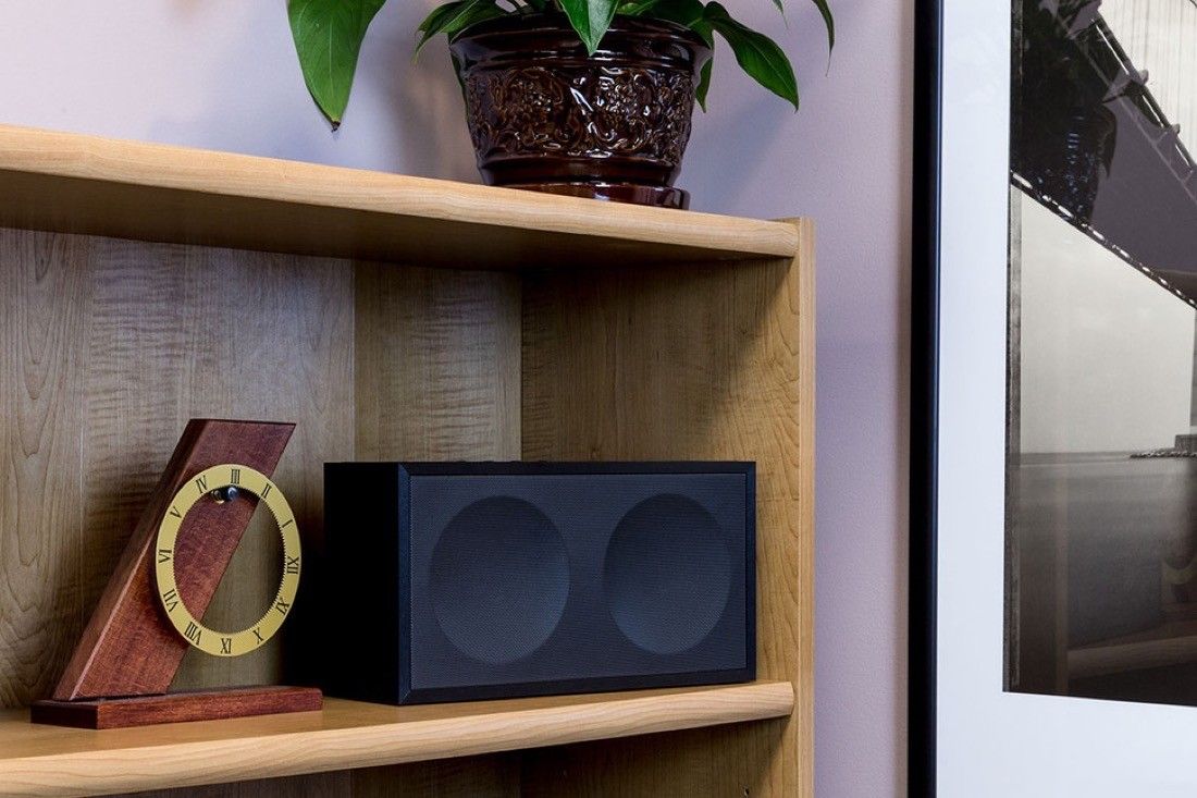 Jego rozmiary to 17.2 x 32 x 10.6 cm. Masa wynosi natomiast około 2.5 kilograma. Frontowy panel w całości pokrywa maskownica z charakterystycznym odkształceniem do środka podkreślającym umiejscowienie dwóch dużych jak na tego typu konstrukcję, bo aż 77 mm przetworników nisko tonowych. Te są dodatkowo wsparte wysokotonową 26 mm kopułką dla podkreślenia górnych partii reprodukowanych dźwięków.