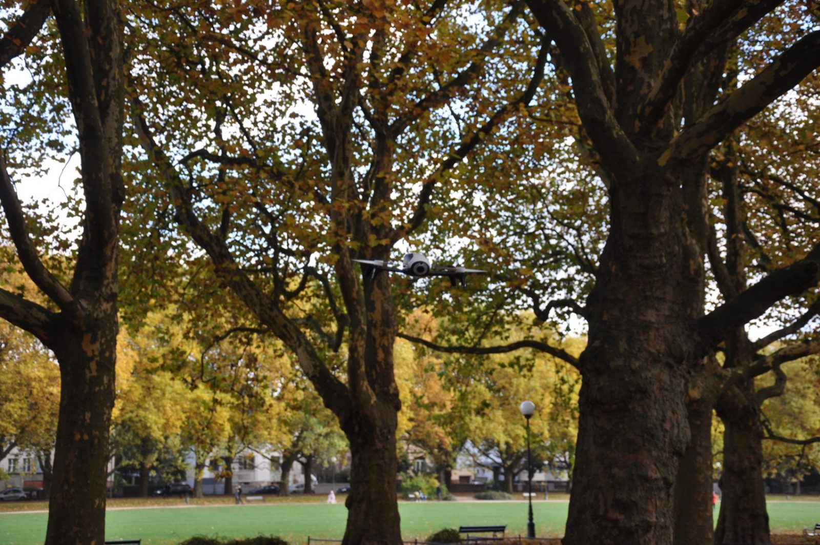 Całe szczęście, gdy tylko wstałem i przeszedłem kilka kroków, dron się połączył i mogłem kontynuować latanie. BEBOP 2 posiada kamerę wideo z 14 pikselowa matrycą i obiektywem typu rybie oko, dzięki czemu jest w stanie objąć naprawdę szeroki kawałek rejestrowanego planu. Podczas latania, szczególnie tego niskiego, gdzie mogą pojawić się jakieś przeszkody, taki obiektyw ma bardzo duży sens i pozwala w porę zmienić kierunek lub wysokość lotu.