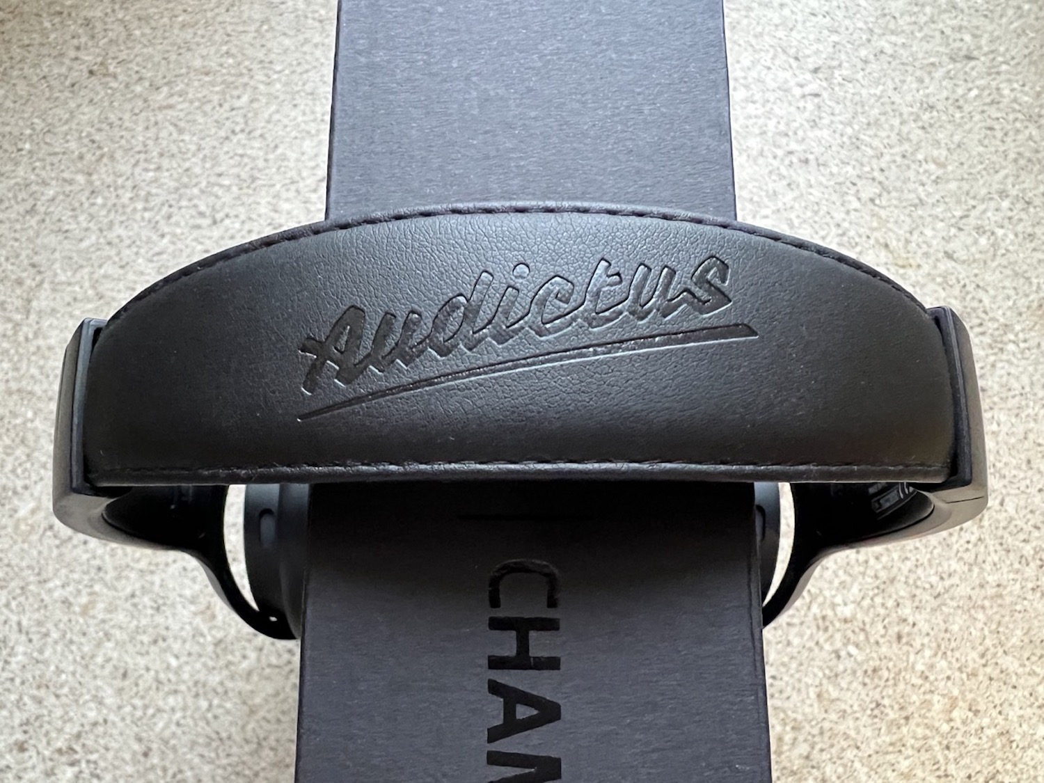 Materiał na potylicy jest estetycznym dodatkiem do prezentacji wizualnej słuchawek. Nadaje on pewnego charakteru, który sprawia, że słuchawki nie są całkiem zwyczajne. Zastanawiam się natomiast, czy napis „Audictus” na zewnętrznej części nauszników specjalnie nie jest symetryczny? Według mnie mógłby znajdować się na samym środku, byłoby to znacznie bardziej komfortowe dla oka.