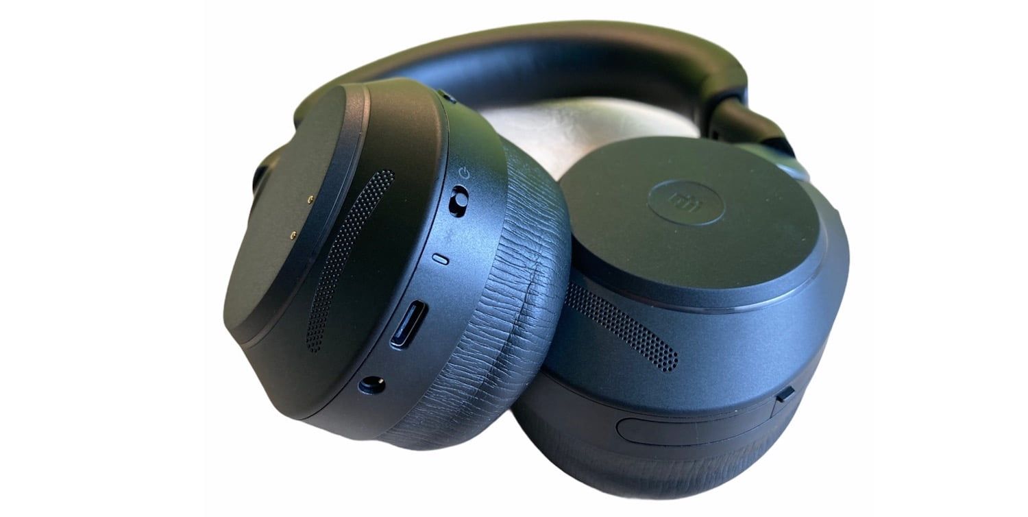 W lewym nauszniku znajduje się wyłącznik zasilania, wskaźnik LED, port ładowania USB-C i gniazdo audio oraz dwa punkty styku do ładowarki biurkowej. Są unie umieszczone na boku nausznika, dzięki czemu łatwo umieścić słuchawki na podstawie ładującej.