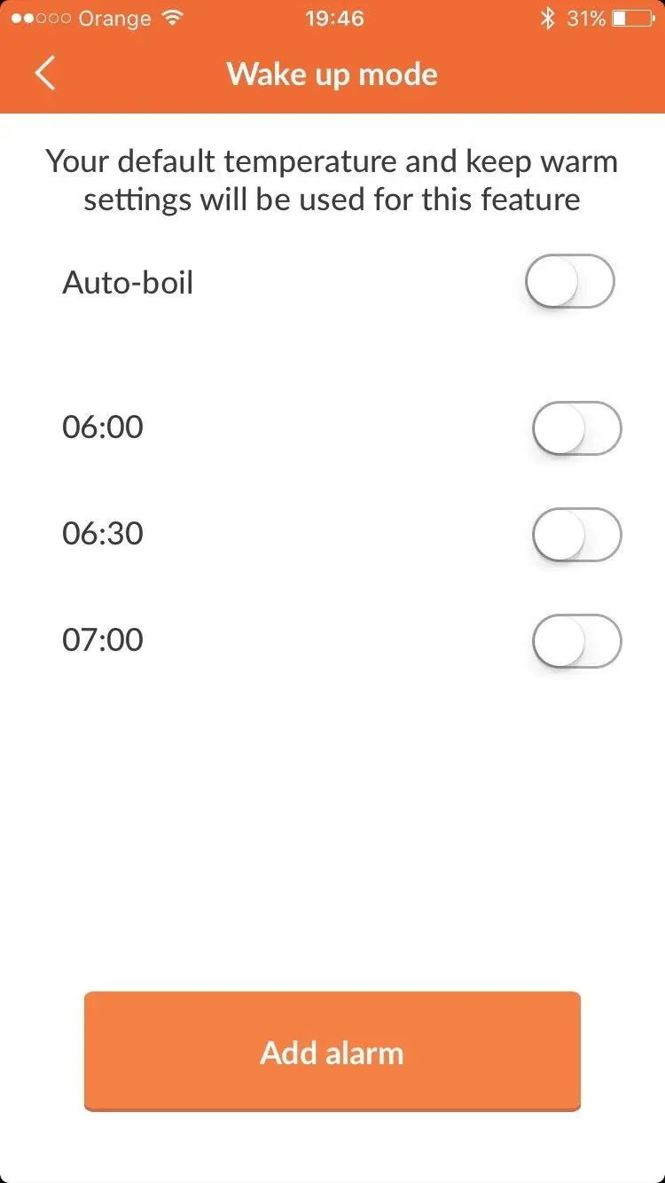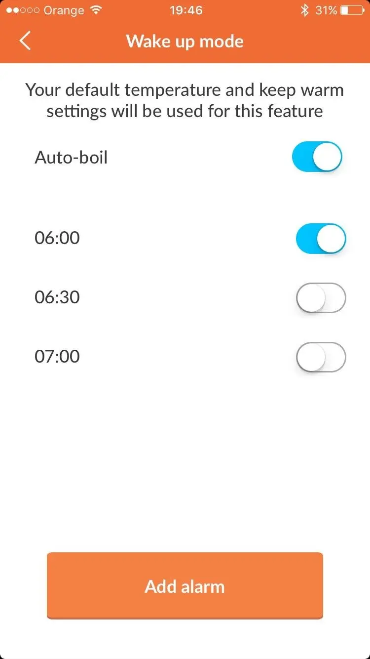 Po połączeniu się z ekspresem mamy możliwość zdefiniowania wielu funkcji. Możemy na przykład ustawić budzik w ekspresie, który o poranku obudzi nas dźwiękiem alarmu i zaproponuje kawę. Możemy także tak wprowadzić ustawienia, aby kawa zawsze była automatycznie parzona w chwili wyłączenia budzika.
