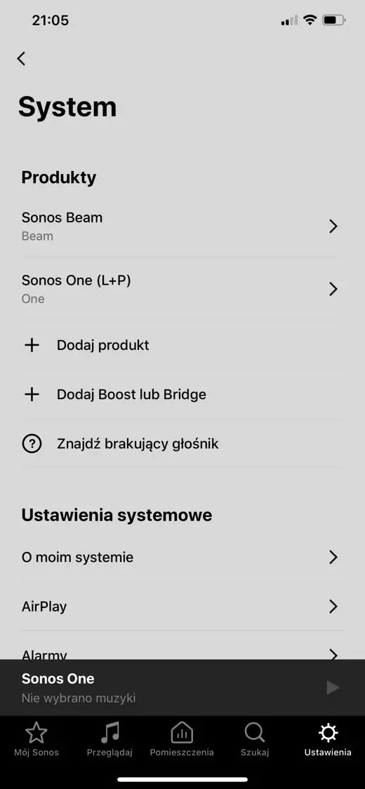 Konfiguracja systemu za pomocą aplikacji Sonos