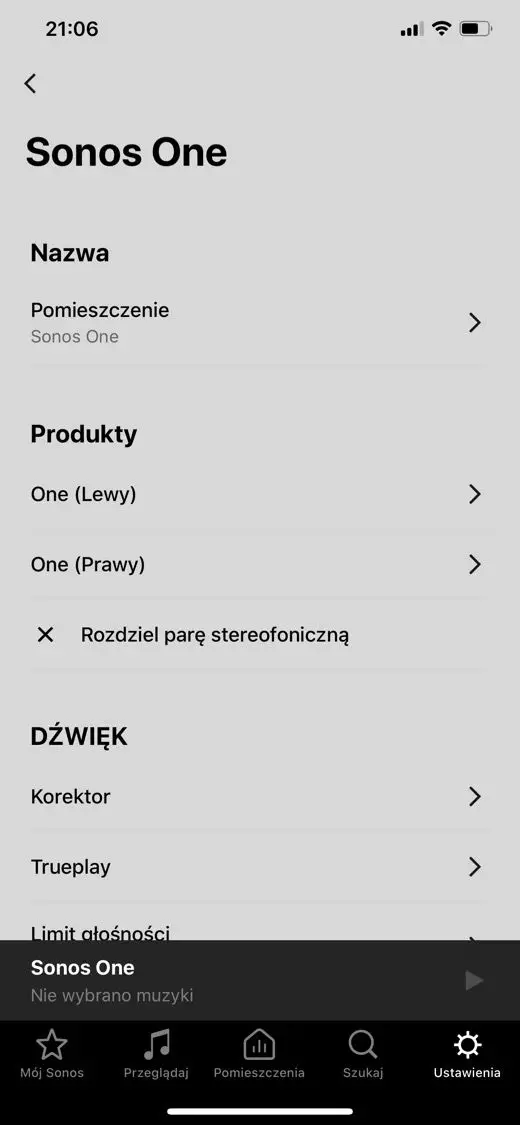W aplikacji mamy możliwość tworzenia pomieszczeń, a także użycie equalizera dla każdego urządzenia z osobna. Jest też opcja „podbicie basu”, która standardowo jest uruchomiona i faktycznie z tą opcją dźwięk brzmi o niebo lepiej. Zdecydowanie większym ficzerem jest „Trueplay”, które jest szerokorozumianym systemem dopasowywania dźwięku do danego pomieszczenia.