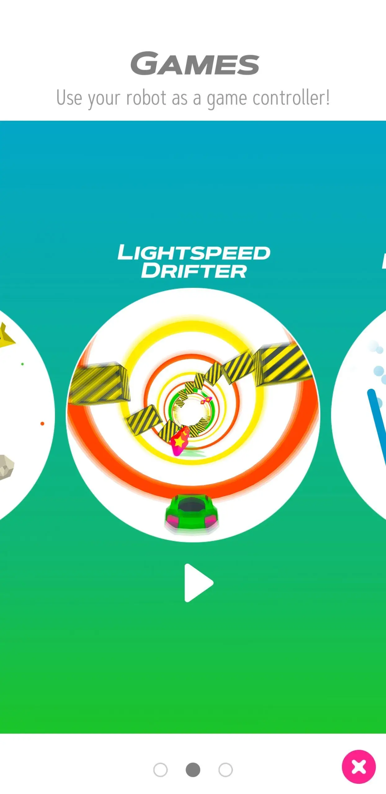 Aplikacja Sphero Mini to kawał dobrej roboty. Jest rewelacyjnie zaprojektowana, a dodatkowo cieszy oko płynnymi animacjami i jaskrawymi, przyjemnymi dla oka kolorami. Pierwsze co ukazuje się na ekranie startowym to joystick służący do sterowania kulką, na pochwałę zasługuję płynność i czas reakcji, wszystko dzieję się w mgnieniu oka.