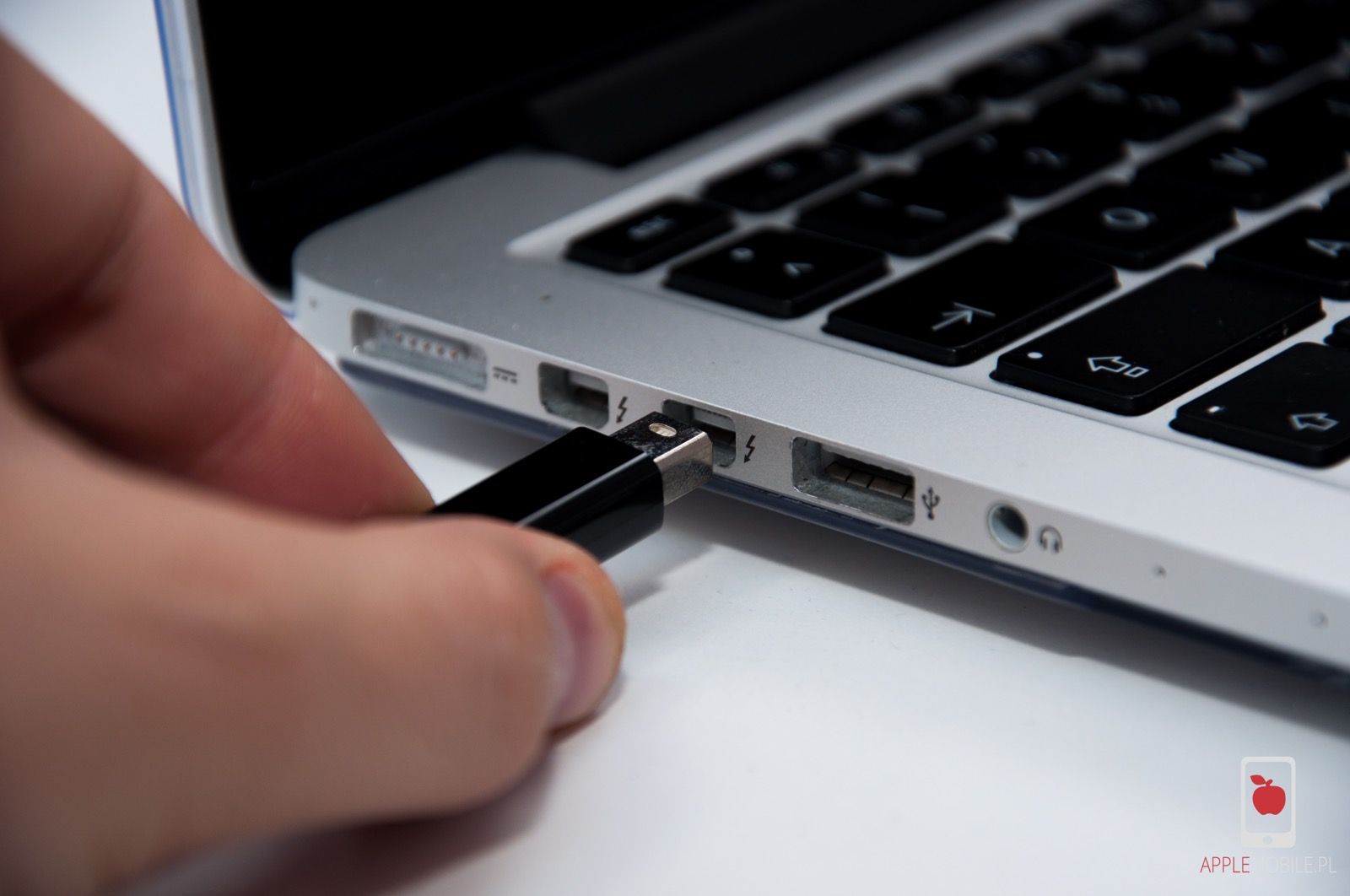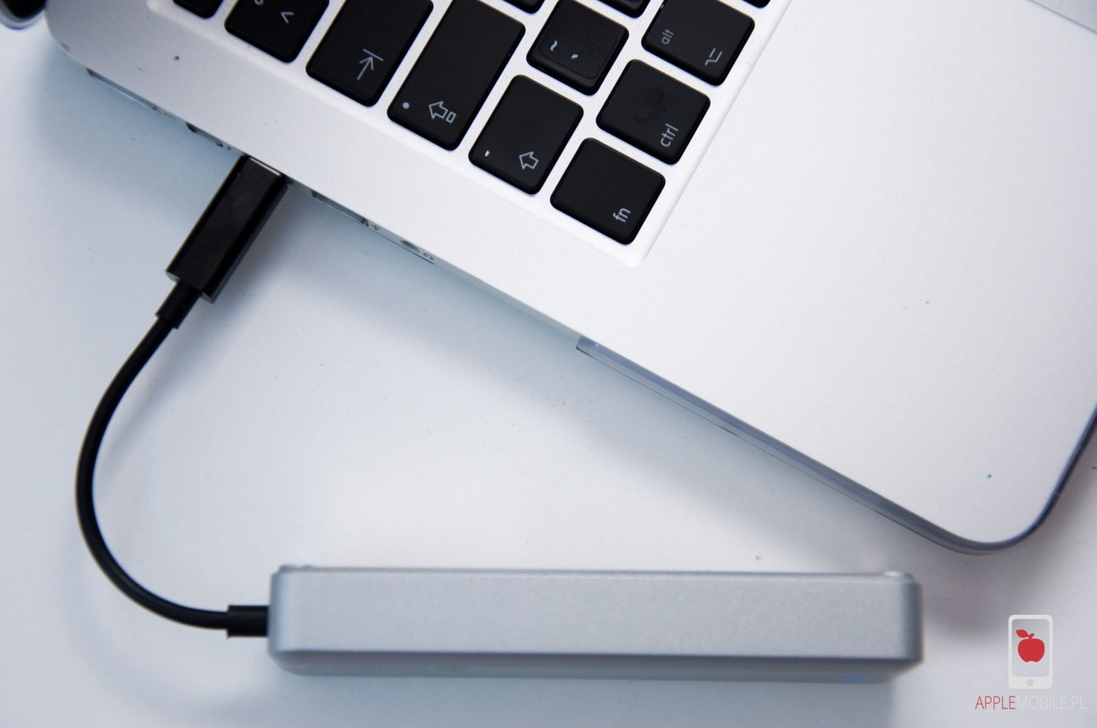 Solidny przewód Thunderbolt jest dość krótki. Jednak w żadnym wypadku w niczym to nie przeszkadza.