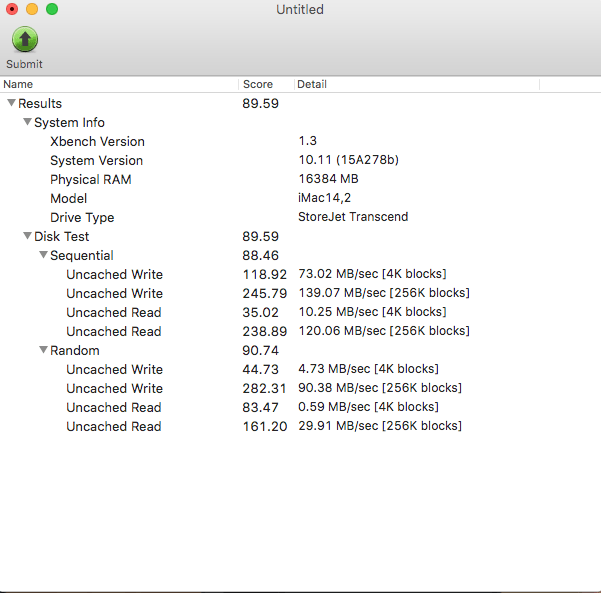 W przypadku xbench wygląda to również bardzo dobrze. Co warto podkreślić, podczas pracy dysk zachowuje się całkowicie bezgłośnie. Mimo mechanicznej konstrukcji nie słychać tu żadnej pracy głowicy czy szumu talerza. Nie czuć także drgań gdy dotkniemy pracujący dysk. Jest to zapewne zasługa dobrej klasy nośnika, ale również dobrze wykonanej obudowy oraz gumowej osłonki.