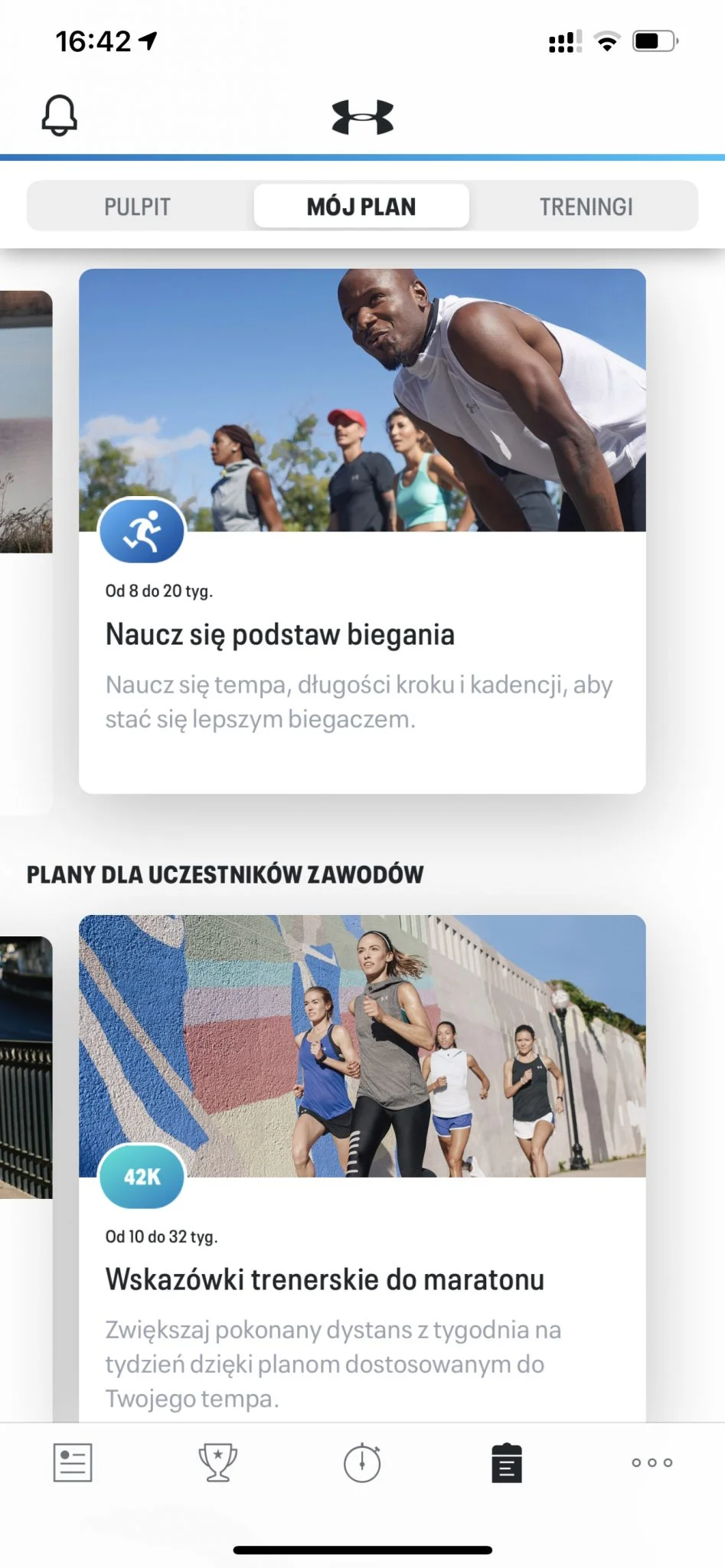 Można również skorzystać z wirtualnych planów treningowych, które pozwolą początkujących wprowadzić w podstawy biegania (trzymanie tempa, kadencji, długości kroku), odchudzania czy w późniejszym okresie przygotowania do osiągania celów biegowych.