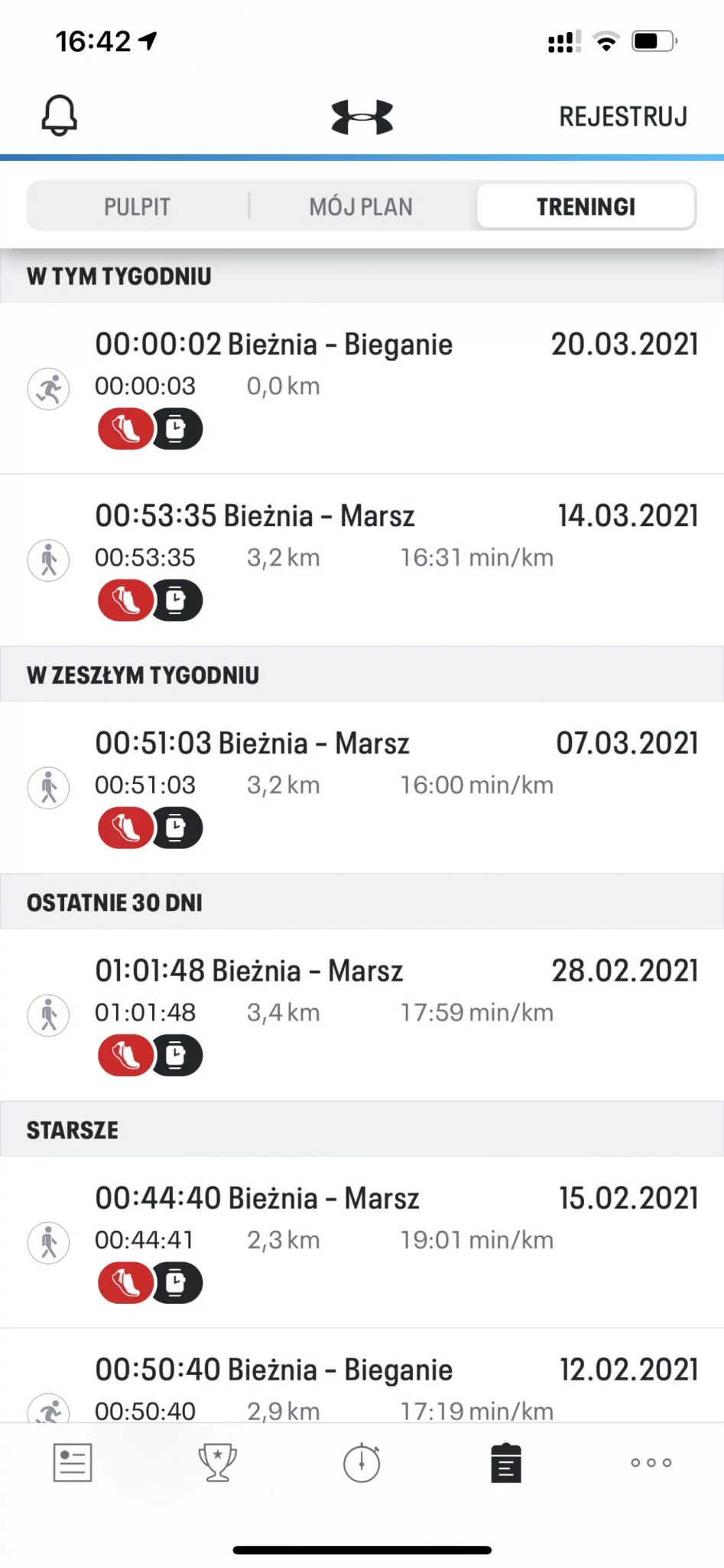 Bieganie czy marsz na świeżym powietrzu, to nie jedyne aktywności, które możemy monitorować dzięki appce UA. Producent przewidział monitorowanie podczas biegu/marszu na bieżni, ale także podczas takich aktywności jak joga, crossfit, spinning czy różnego rodzaju ćwiczenia na siłowni czy pływanie.