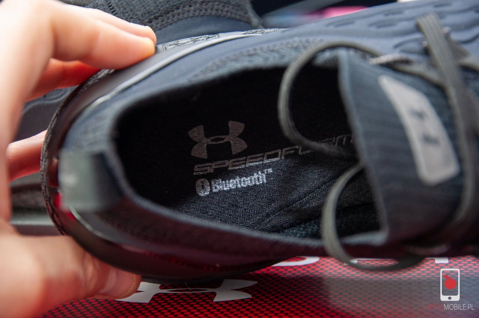 W tym miejscu kryje się logo znane bardziej ze smartfonów czy różnych elektronicznych akcesoriów, a nie butów, a mianowicie logo Bluetooth. Te samo logo znajdziemy wewnątrz na wkładce. To właśnie dlatego możecie znaleźć wpis o butach na stronie poświęconej produktom Apple i gadżetom.