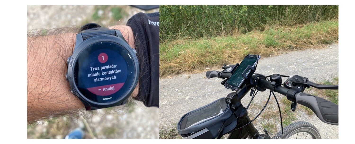Tego akurat testować nie miałem zamiaru, ale życie pisze różne scenariusze. Podczas jednej z jazd doszło do małej kolizji z innym rowerem. Przeciążenie było na tyle duże, że zegarek Garmin przeszedł w tryb powiadamiania kontaktów alarmowych o wypadku. Mimo uderzenia w przeszkodę telefon pozostał na swoim miejscu, nawet nie zsunęła się silikonowa siatka.