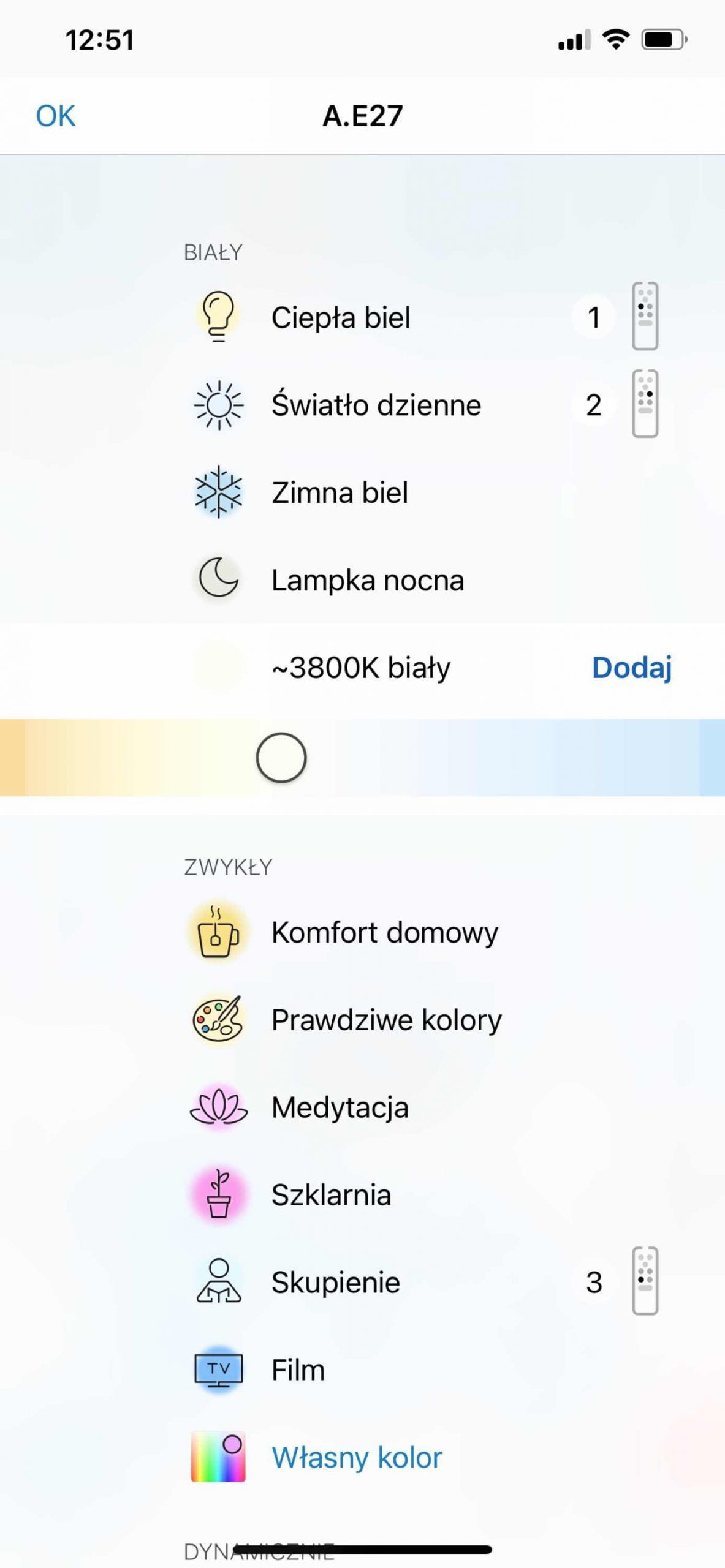 Aplikacja jest w pełni przetłumaczona na język polski i oferuje naprawdę przemyślany układ. W dolnej części znajdziemy odnośnik do każdej podkategorii, która oferowana jest przez aplikację. Oprócz „gołego” ustawienia i przypisania samej żarówki, aplikacja umożliwi wykonywać takie czynności, jak tworzenie wybranych przez nas „scen”, a także ustawienie tak zwanego „rytmu dobowego”.