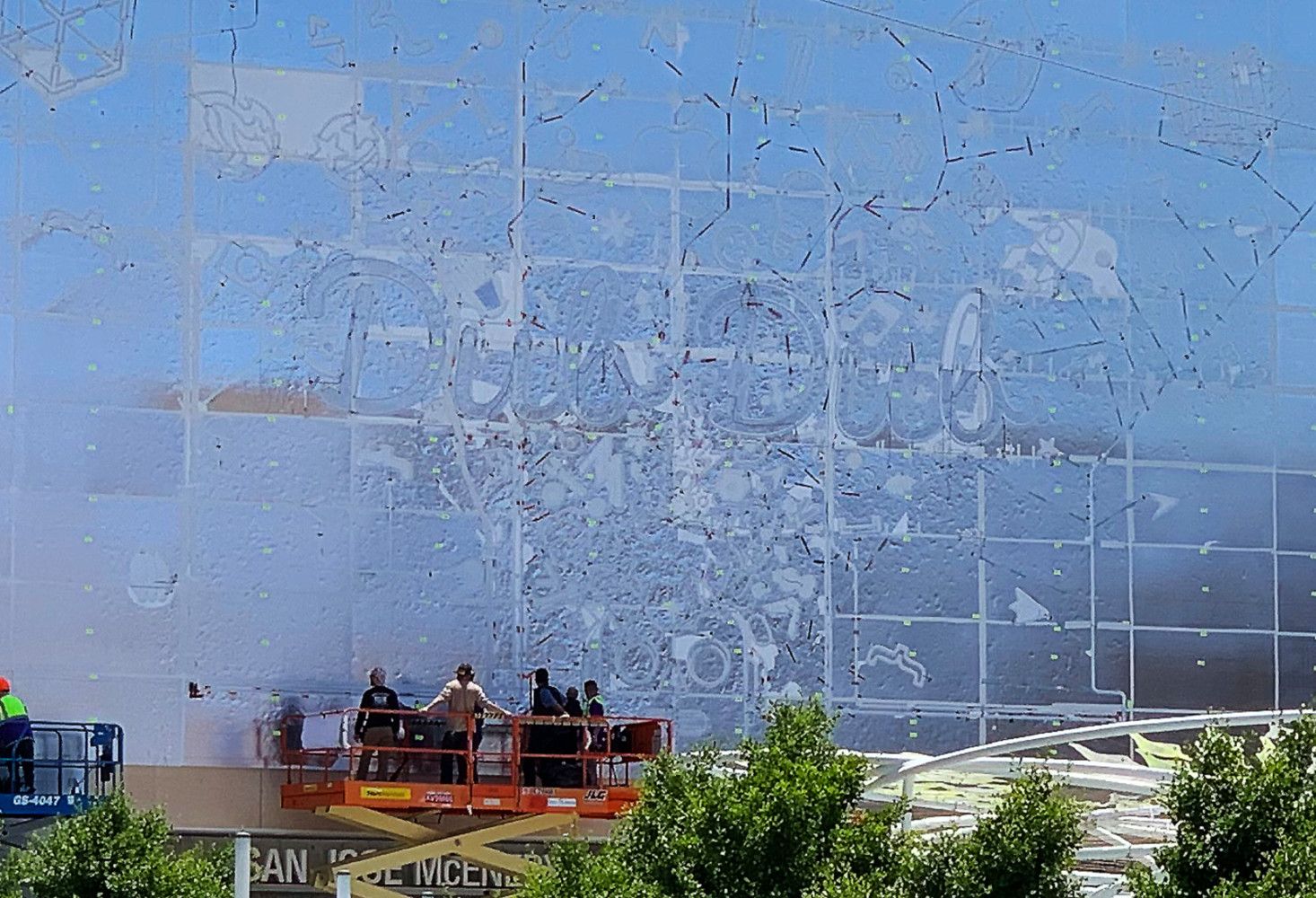 Poniżej widzicie zdjęcia, na których jest budynek, którego ściany zaczęły być malowane na „kolor” konferencji (możemy dostrzec tam np. emoji). Na ulicach zawieszono również banery, które informują o nadchodzącej konferencji. Zawieszono także flagi!
