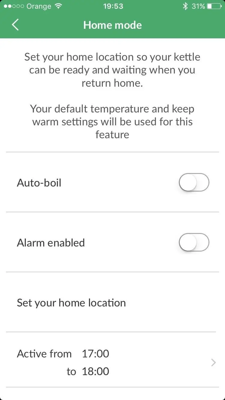 Oczywiście by nie drałować baterii naszego telefonu ciągłym sprawdzaniem naszej lokalizacji, możemy wybrać przedział czasowy, w którym najczęściej wracamy do domu. Aby telefon tylko wtedy sprawdzał naszą pozycję i w razie zbliżania do domu, zaproponował nam gotowanie wody. Pomyśleli o wszystkim.