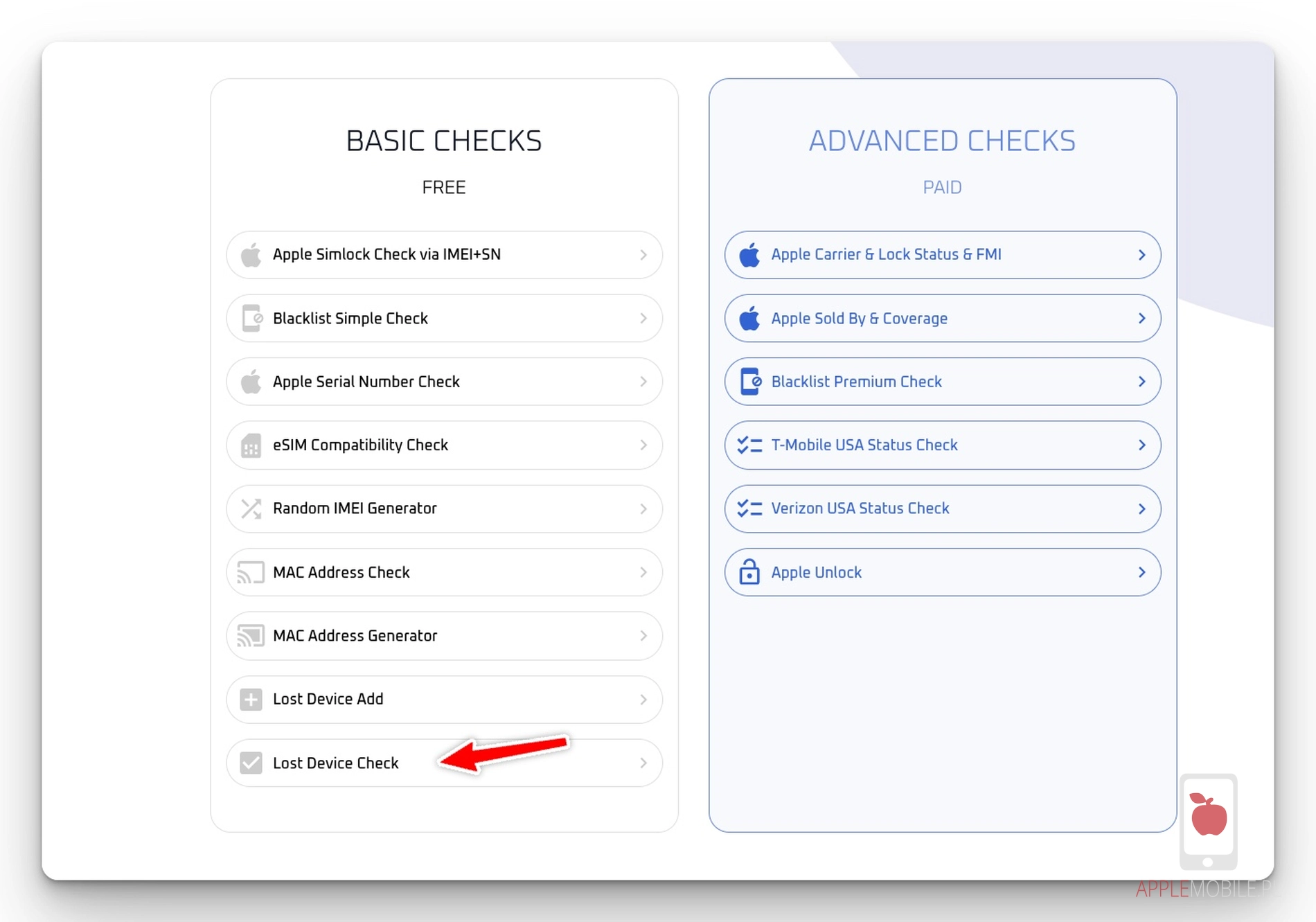 Krok 2. Korzystamy z funkcji Lost Device Check by sprawdzić czy iPhone nie jest kradziony/utracony