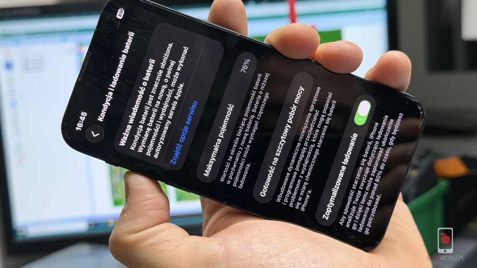 niska kondycja baterii telefonu iPhone informuje o tym że nalezy wymienić baterię