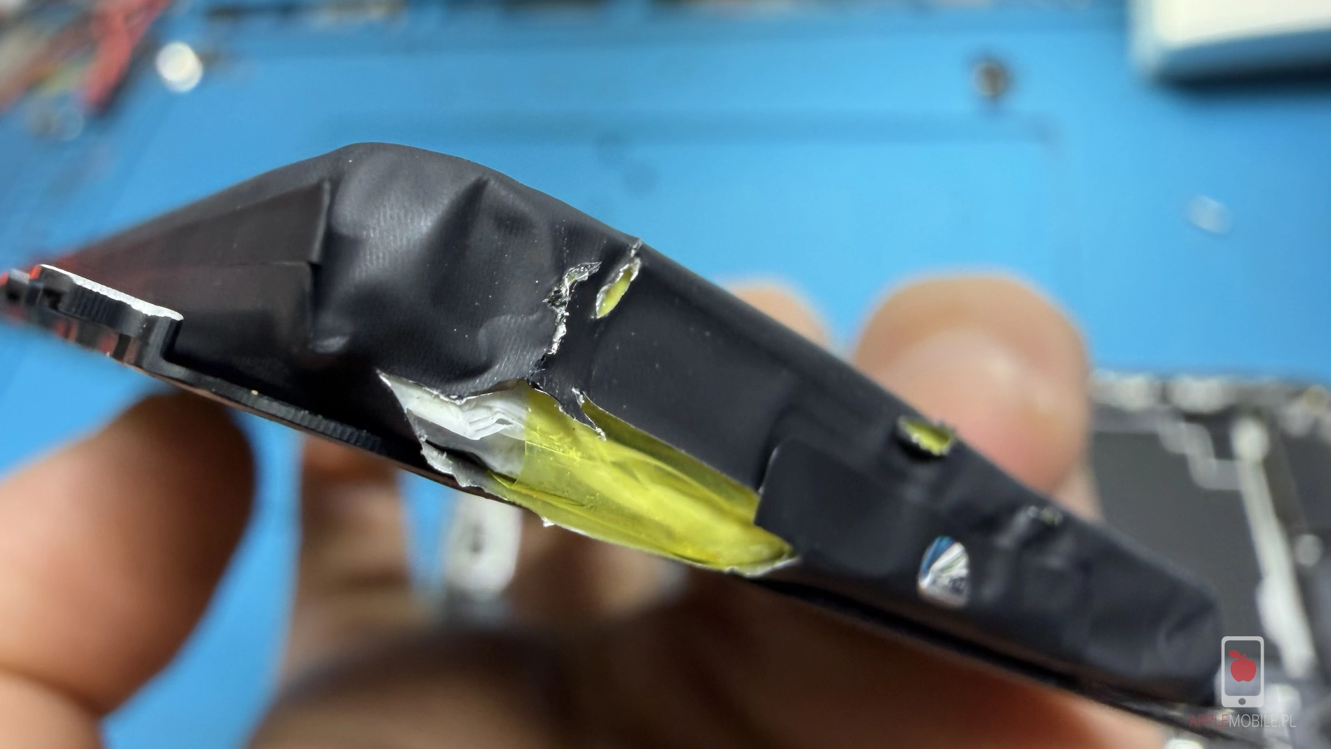 Po otwarciu takiego telefonu, w którym ekran sprężynuje od razu widać winowajcę – to spuchnięta bateria!