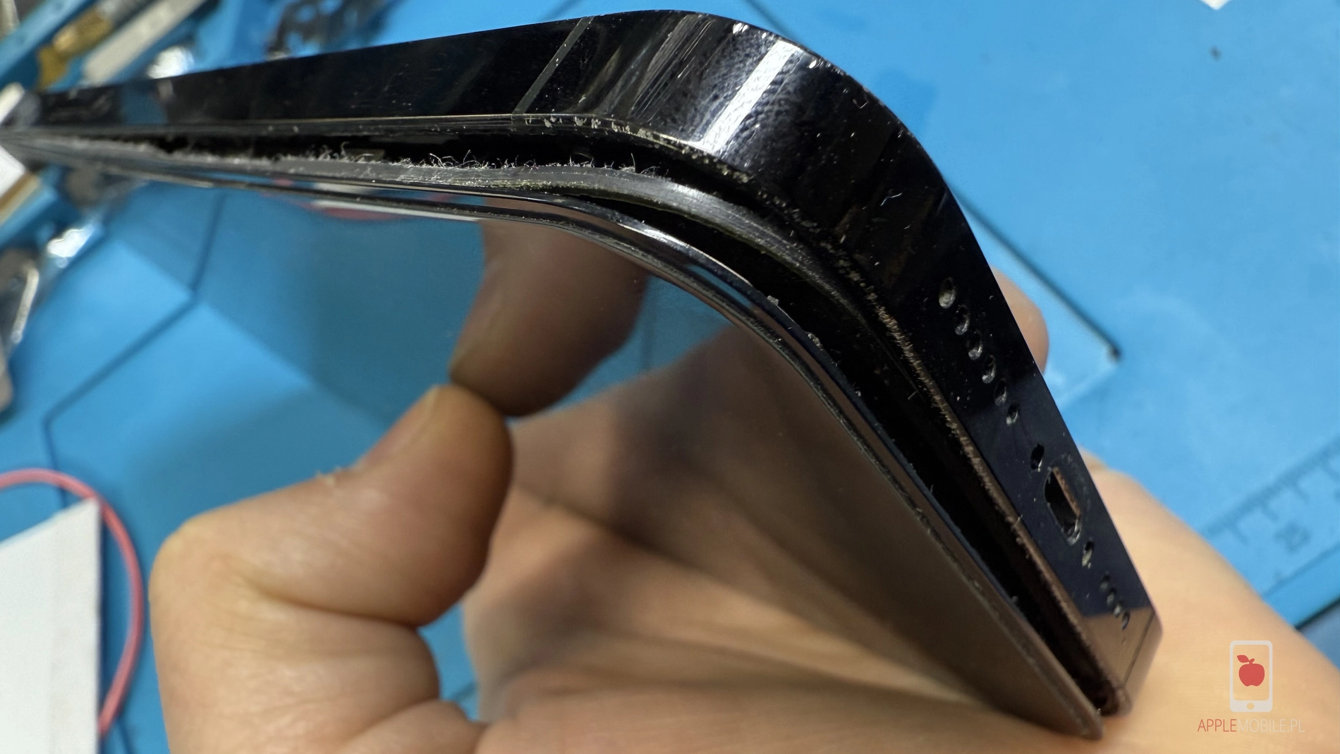 • Scenariusz optymistyczny: Ekran odklei się od ramki (puści klej uszczelniający). Telefon straci wodoszczelność, a do środka dostanie się kurz.