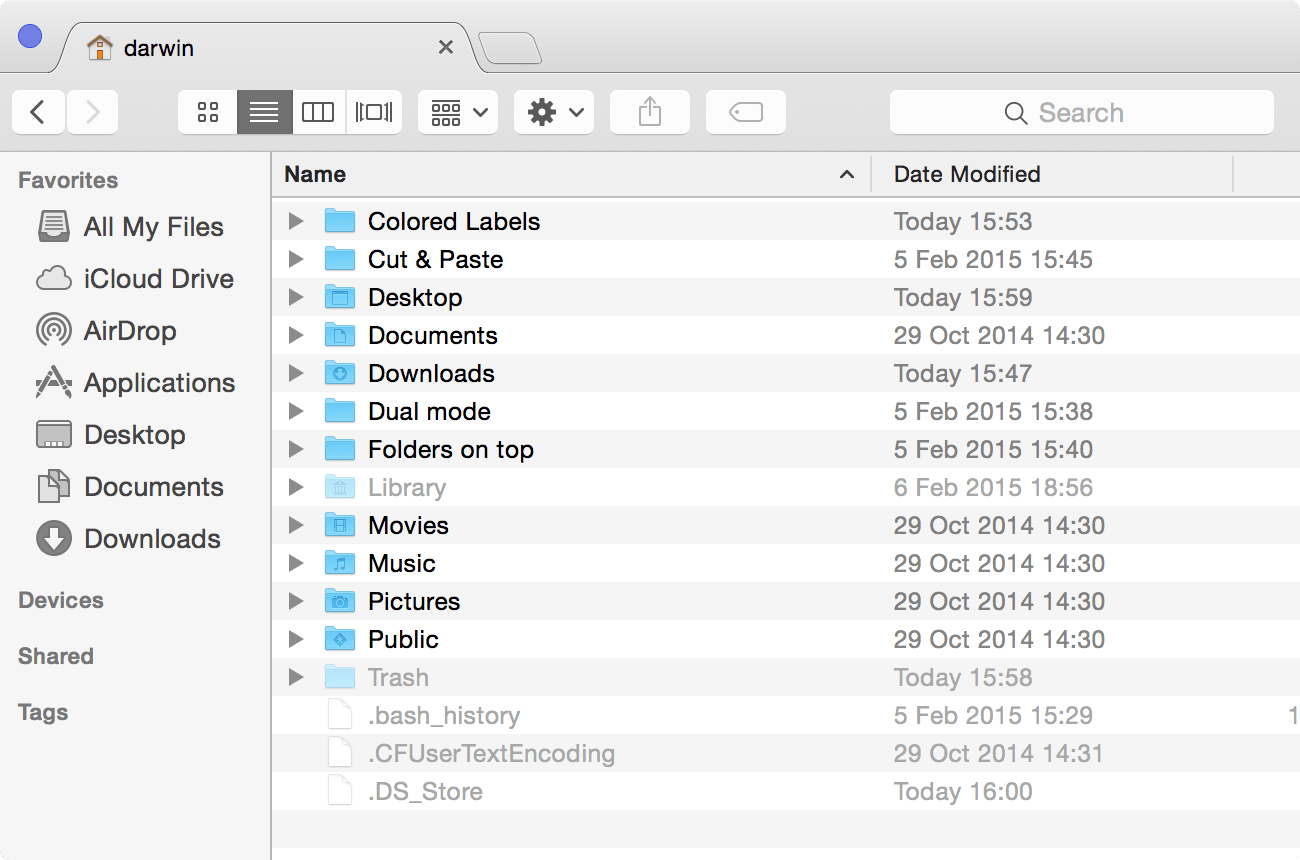Folders on top – foldery zawsze u góry w widoku listy. Można także łatwo włączyć wyświetlanie ukrytych plików.