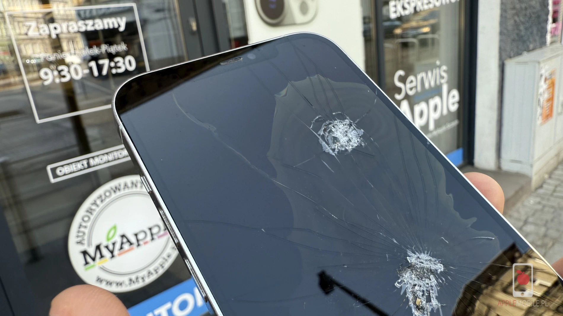 Jaka jest cena naprawy zbitej szybki w iPhone 12 Pro Max w serwisie?