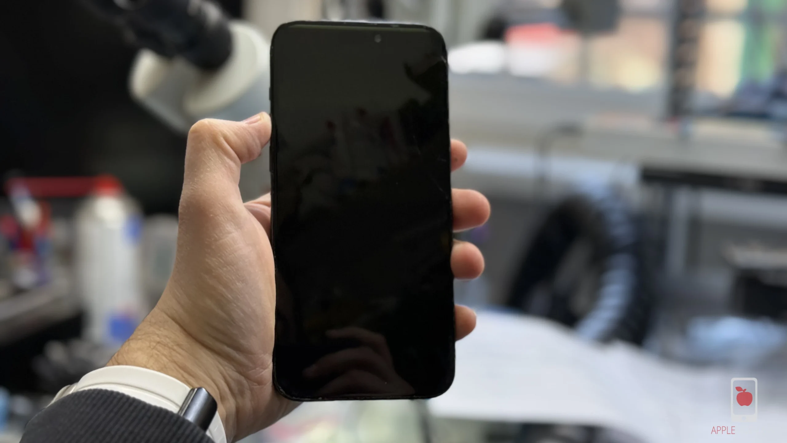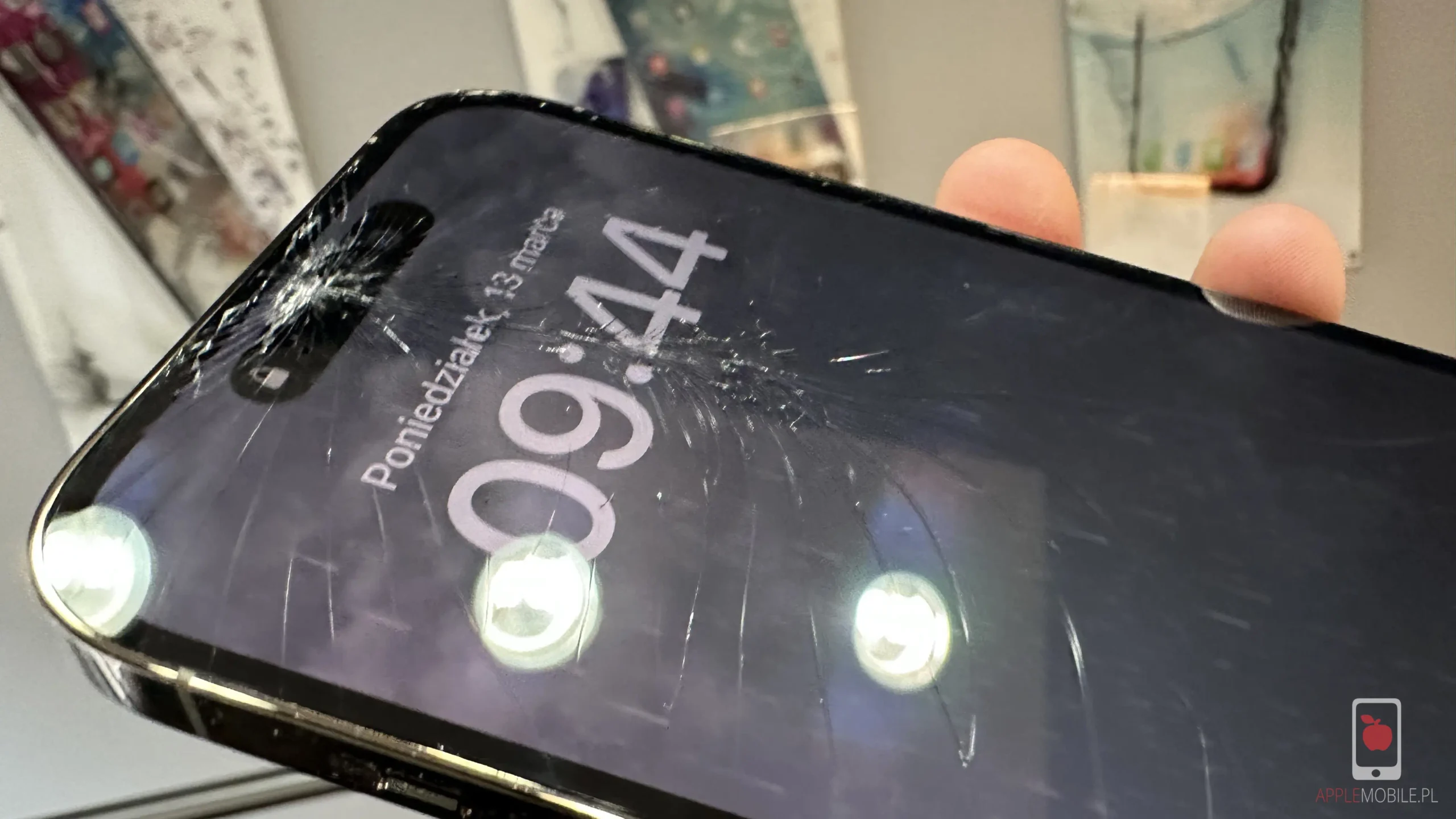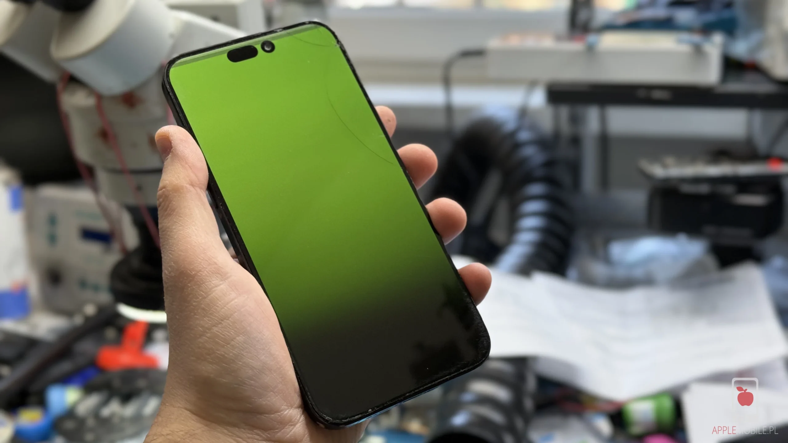 Inspekcja iPhone’a 14 Pro Max przed wymianą zbitej szybki