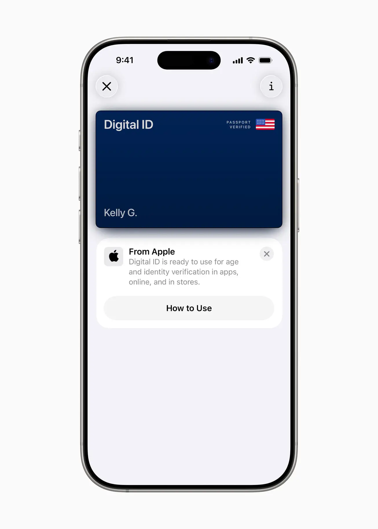 Użytkownicy mogą tworzyć i dodawać identyfikatory cyfrowe do aplikacji Portfel za pomocą amerykańskiego paszportu, a następnie okazywać je w wybranych punktach amerykańskiej Agencji Bezpieczeństwa Transportu podczas podróży krajowych.