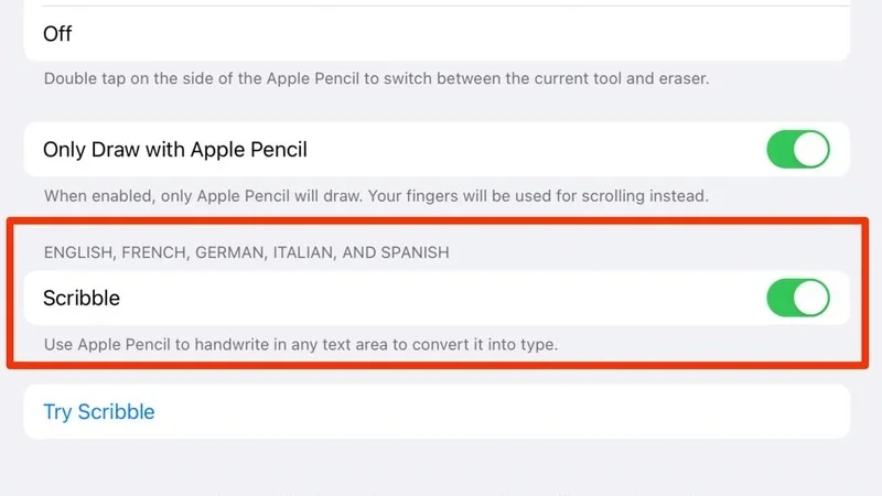 Aktualnie posiadacze iPadów z systemem iPadOS 14 otrzymali możliwość skorzystania z funkcji Scribble dzięki której można zmienić tekst napisany odręcznie na maszynowy. Funkcja ta działanie jedynie z językiem chińskim oraz angielskim. Niedługo ma się to jednak zmienić. W 2 becie systemu iPadOS 14.5 zostało dodane wsparcie także dla innych języków takich jak: hiszpański, niemiecki, francuski, włoski oraz portugalski. Oficjalna premiera systemu iPadOS 14.5 powinna być najwcześniej w połowie marca.