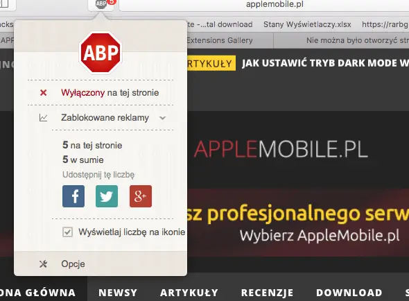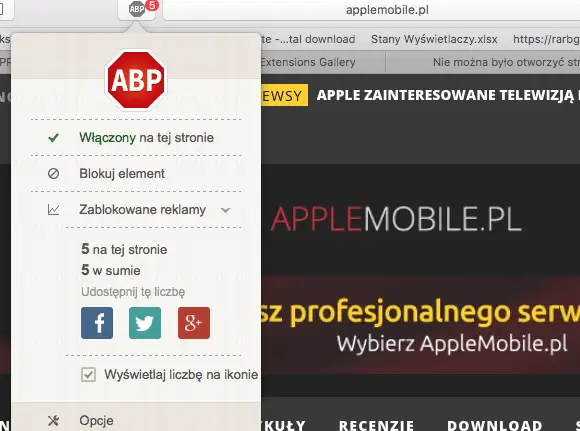 Jak włączyć blokowanie reklam i wyskakujących okienek w Safari poprzez Adblock Plus?