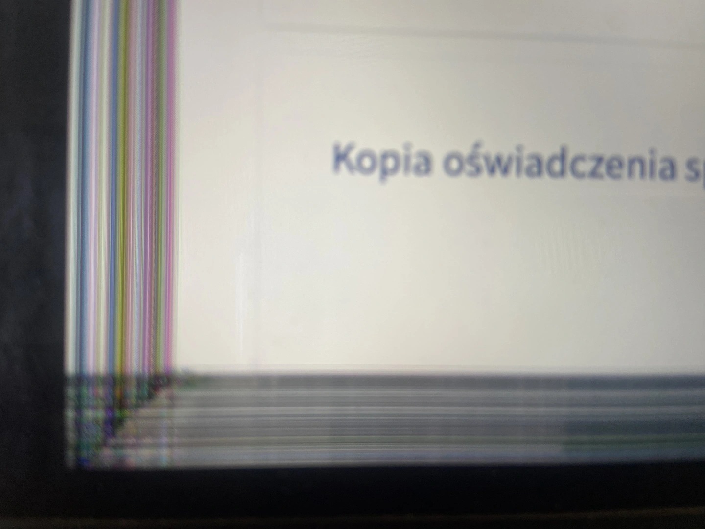 - Pojawia się migotanie ekranu lub subtelne przebarwienia – ukruszone szkło rozprasza światło pod podświetleniem.