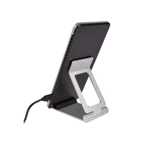 Xtorm Design Delta Stand to nowoczesna bezprzewodowa ładowarka (Qi, do 15W), mogąca jednocześnie pełnić funkcje podstawki pod smartfon, na której może on spoczywać płasko lub pionowo, stojąc (w tym drugim przypadku wszelkie powiadomienia czy alerty są wygodnie widoczne, bez potrzeby sięgania po telefon). Co istotne, rozłożona podstawka jest na tyle stabilna, że z powodzeniem można oprzeć o nią również tablet (np. iPada). Urządzenia można błyskawicznie złożyć, co przydaje się gdy chcemy je spakować np. do torby czy plecaka. Ładowarka jest oczywiście kompatybilna z technologią bezprzewodowego ładowania zastosowaną w smartfonach Apple oraz większości modeli z Androidem i może ładować urządzenia w obudowach/etui (o ile osłona nie jest wykonana z metalu – taka konstrukcja utrudnia proces bezprzewodowego ładowania). Warto też wspomnieć o możliwości ładowania bezprzewodowych słuchawek, po prostu kładziemy je na powerbanka. Cenę urządzenia ustalono na 269 zł.